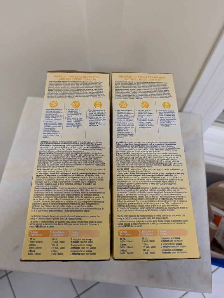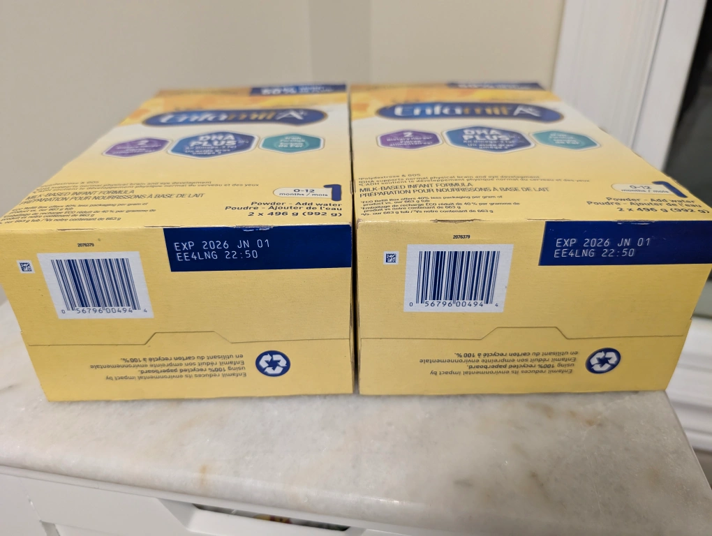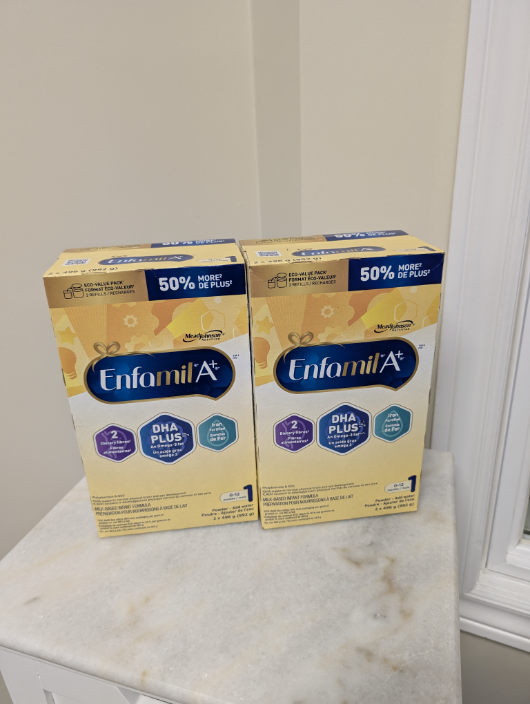 Selling two boxes of Enfamil A+ infant formula. Each box contains 2 x 496g pouches (992g total). Expiry Date: June 2026