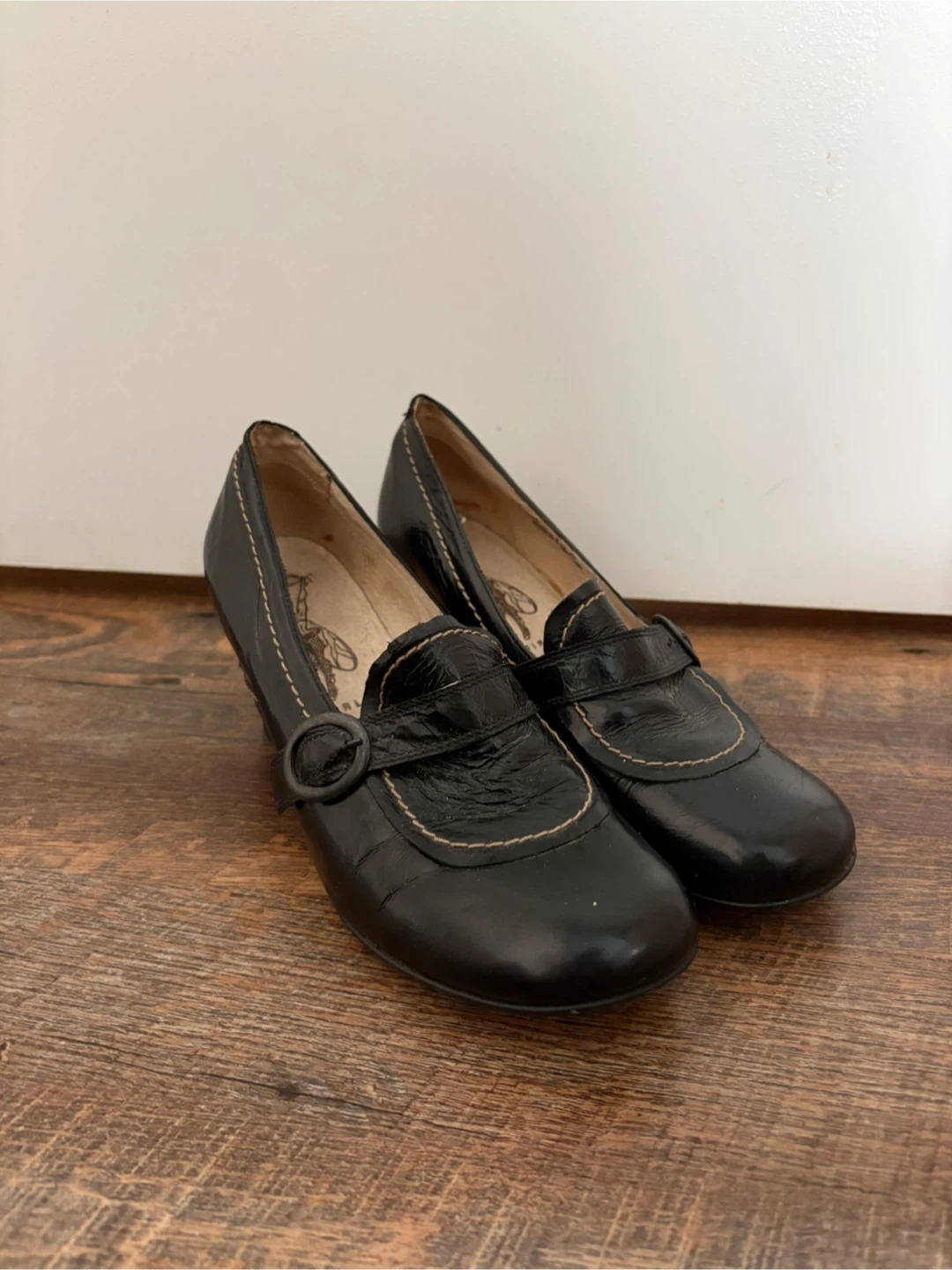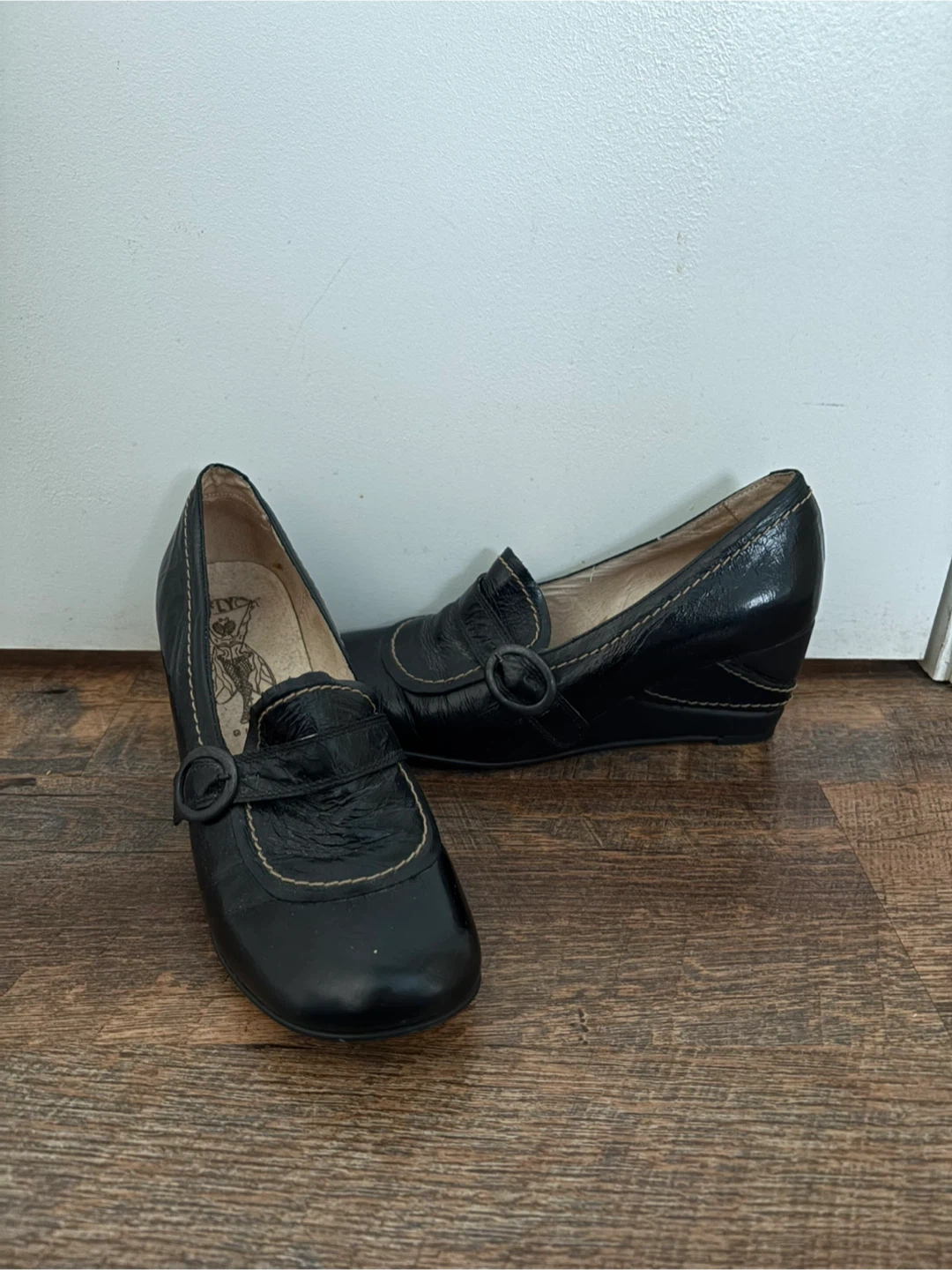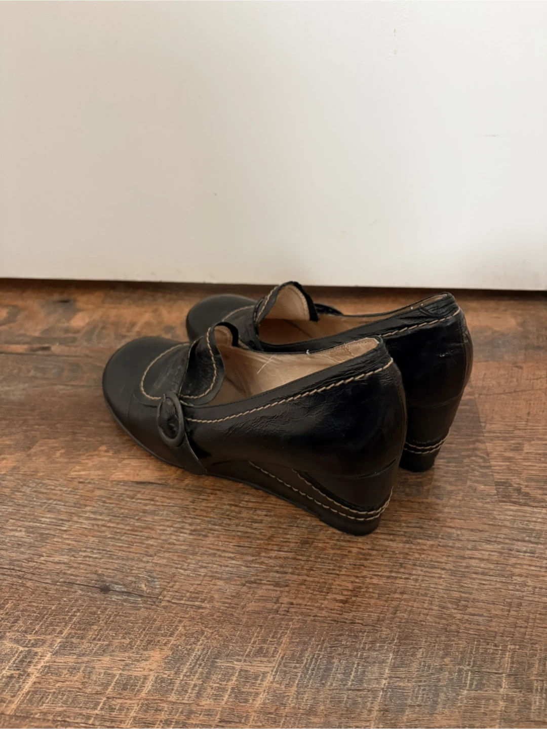 Fly Girl UK black leather wedge shoes in size 41 (approximately US 10).
