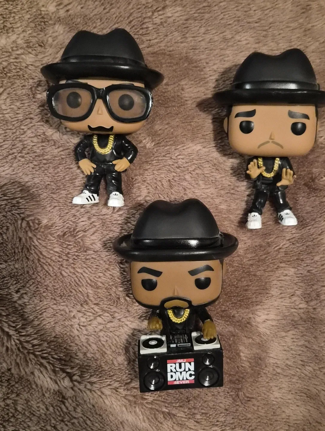 Selling a set of Funko Pop! figures of the iconic hip-hop group Run DMC! These figures are in great condition and would be a perfect addition to any music lover's collection