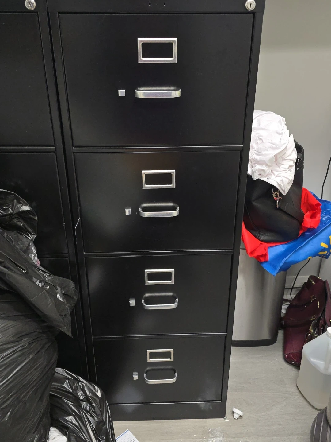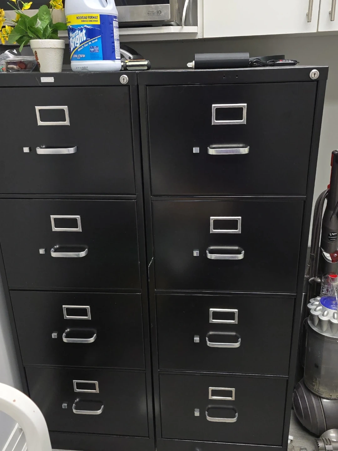Selling a set of two black filing cabinets. They're in good condition and ready to organize your documents. Perfect for a home office or business!