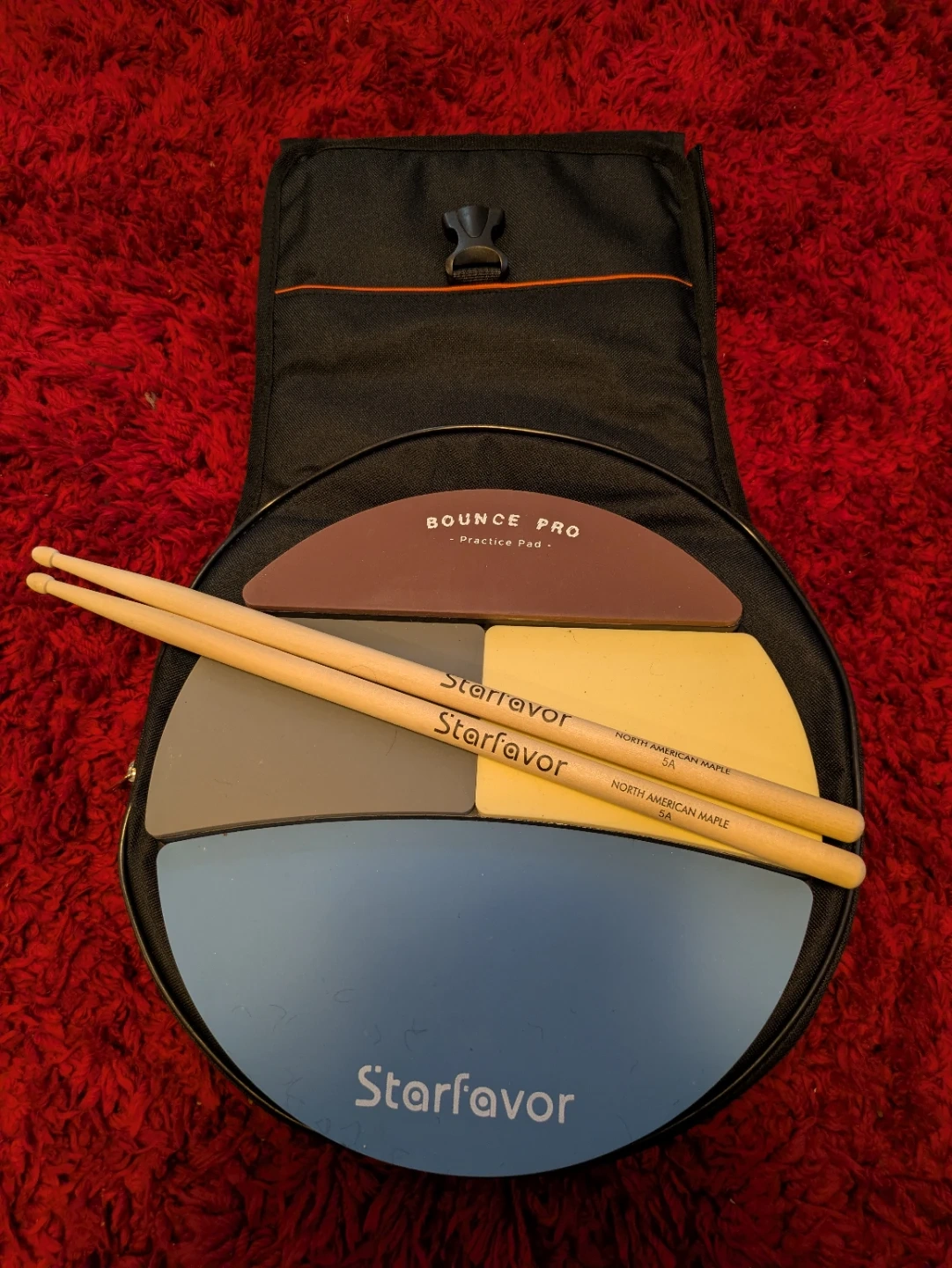 Selling a Starfavor Bounce Pro practice pad! It comes with a carrying case and a pair of Starfavor drumsticks. This pad is great for practicing drumming quietly and improving your technique. Perfect for drummers of all levels!