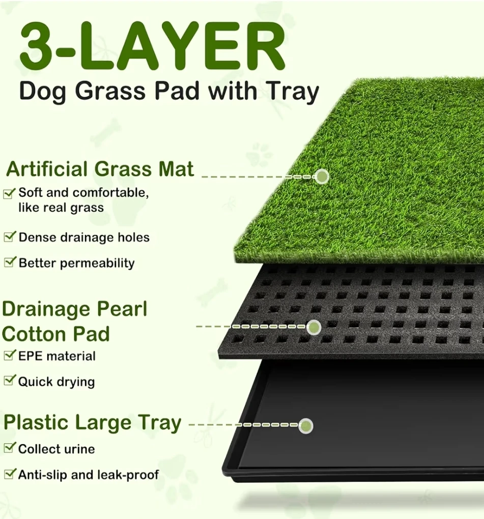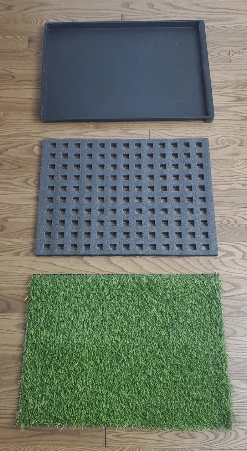Artificial grass mat + 1.5 cm high density pearl cotton pad + tray