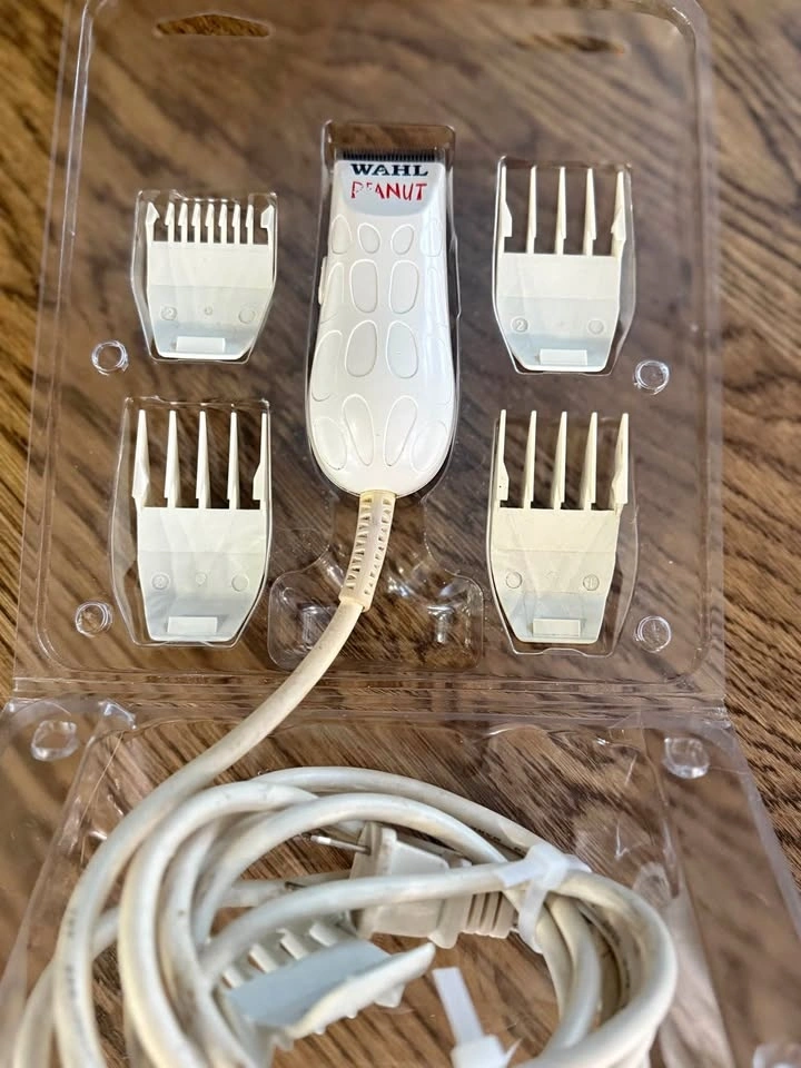 WAHL Peanut trimmer — tiny, powerful, and emotionally stable. Perfect for beards, mustaches… or that neglected chin. Works harder on facial hair than I did on my taxes. Come get it before it runs off to a better home!
