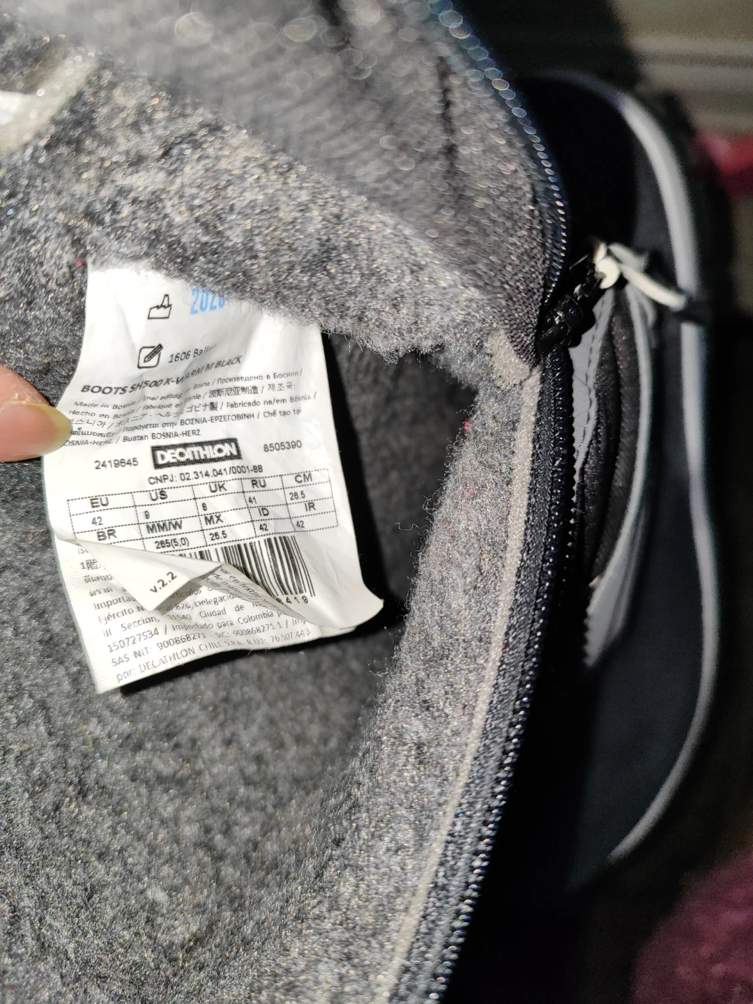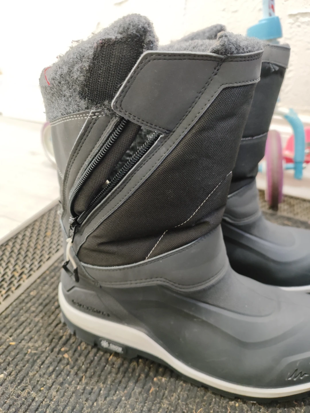 These Quechua snow hiking boots are perfect for keeping your feet warm and dry this winter! They feature a convenient zipper closure and a durable, grippy sole. The size is US 9 / UK 8 / EU 42.