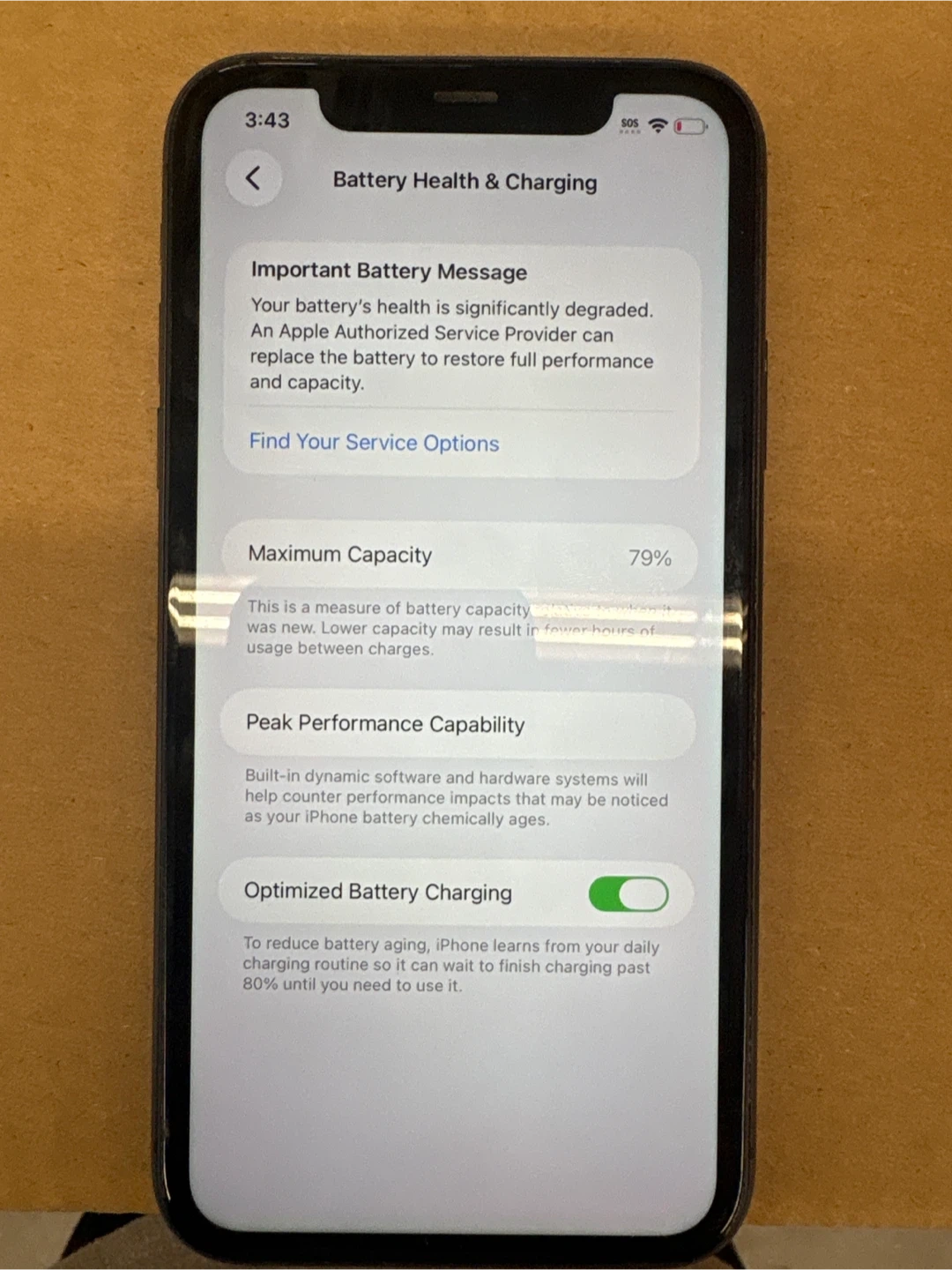 Selling an iPhone 11. The battery health is at 79%. There are some scratches on the screen as shown in the pictures