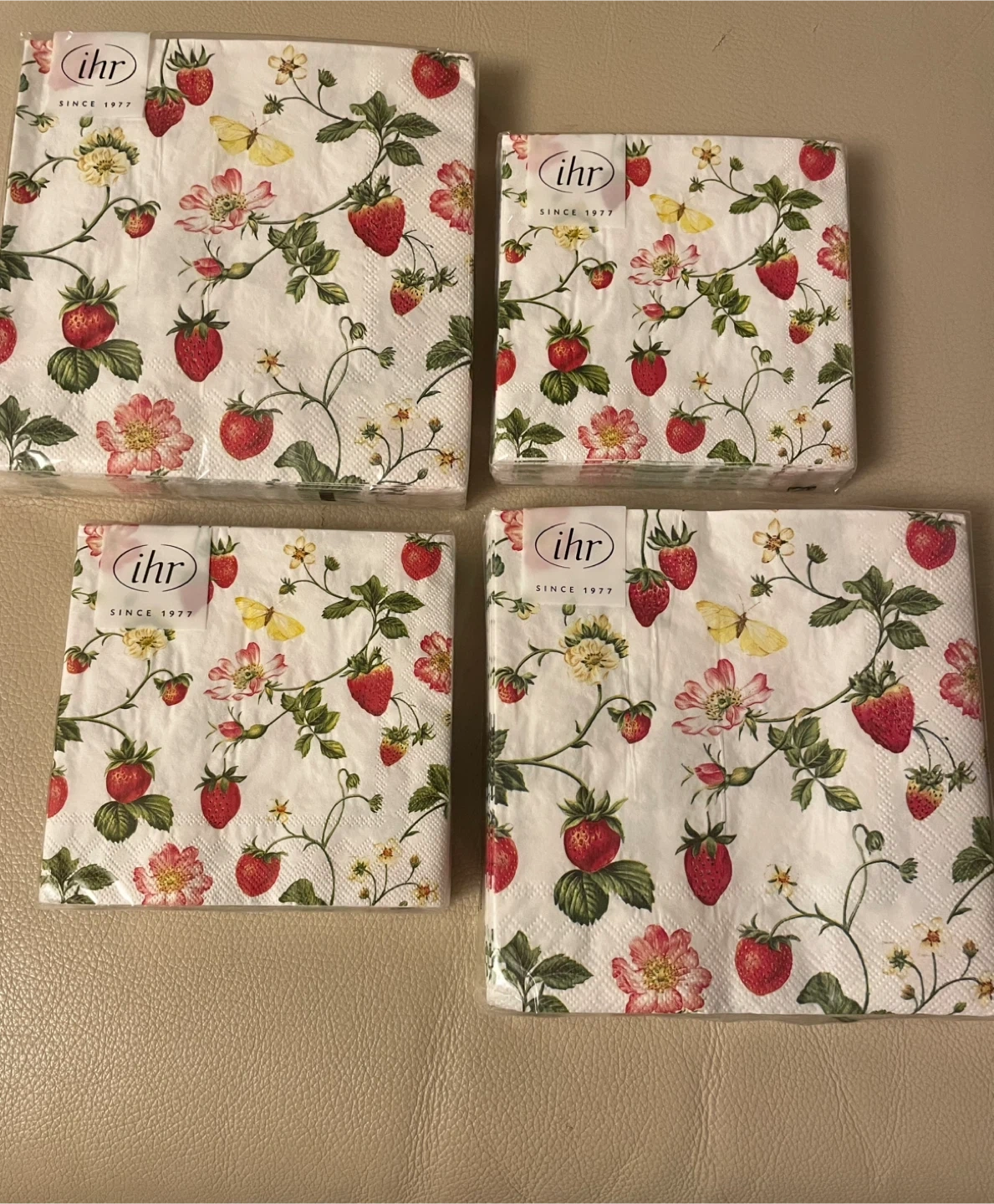 I’m selling these IHR napkins, brand new in their original packaging! They feature a lovely strawberry and floral design. Perfect for adding a touch of charm to your table setting