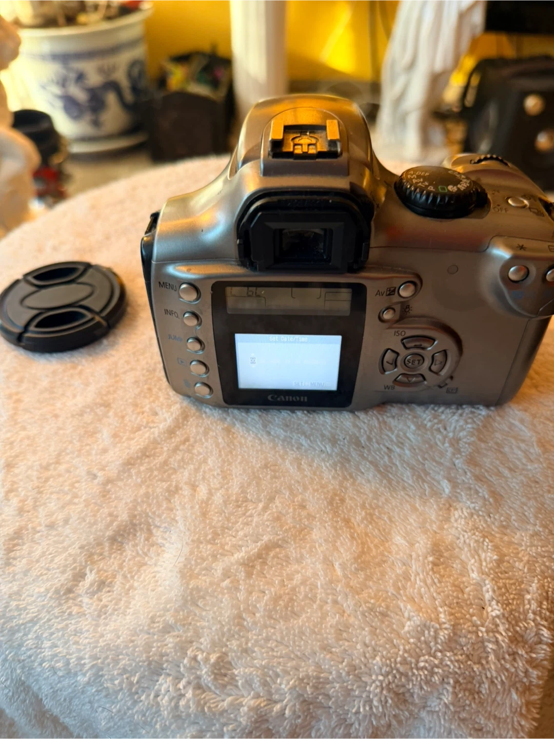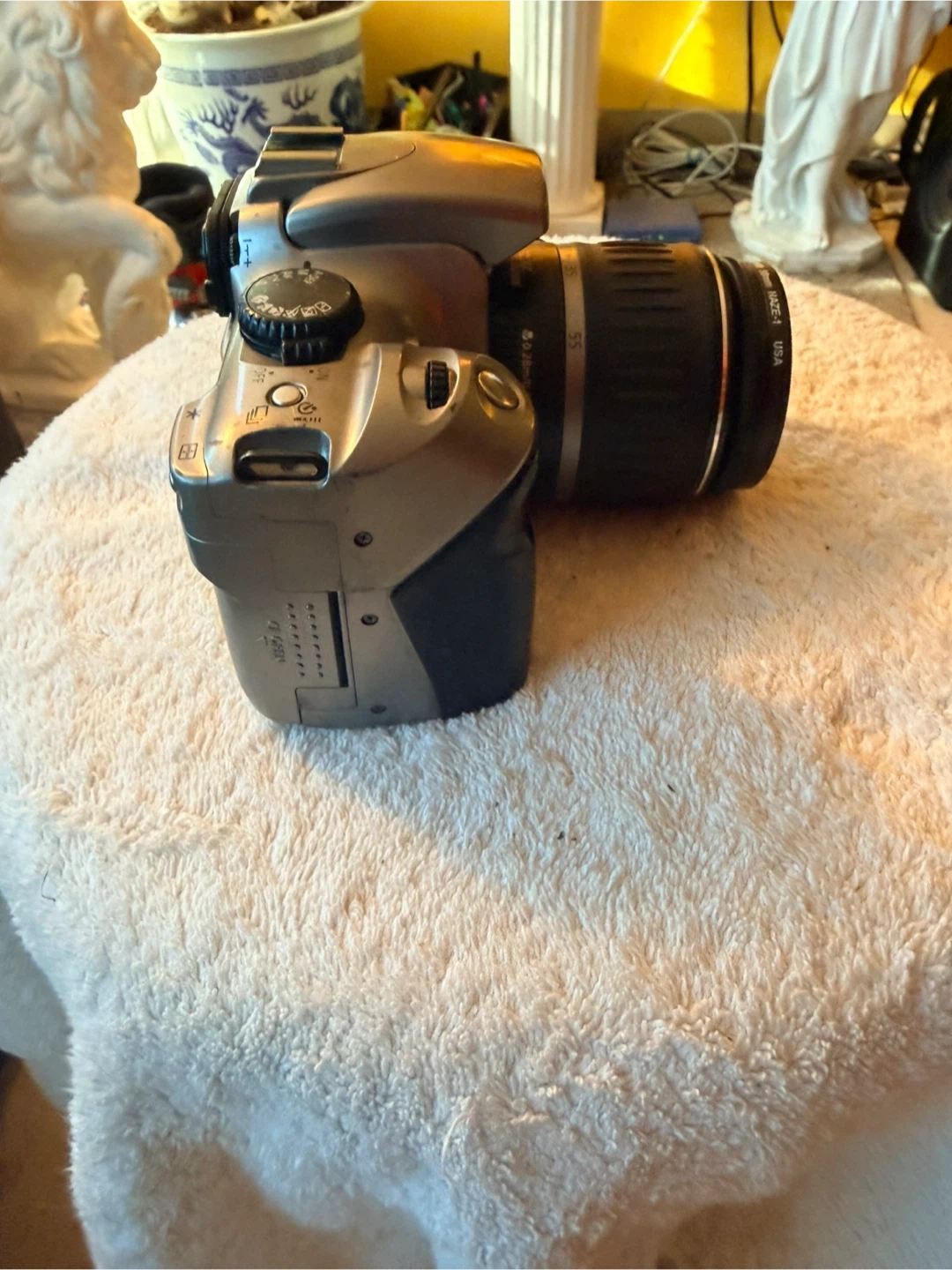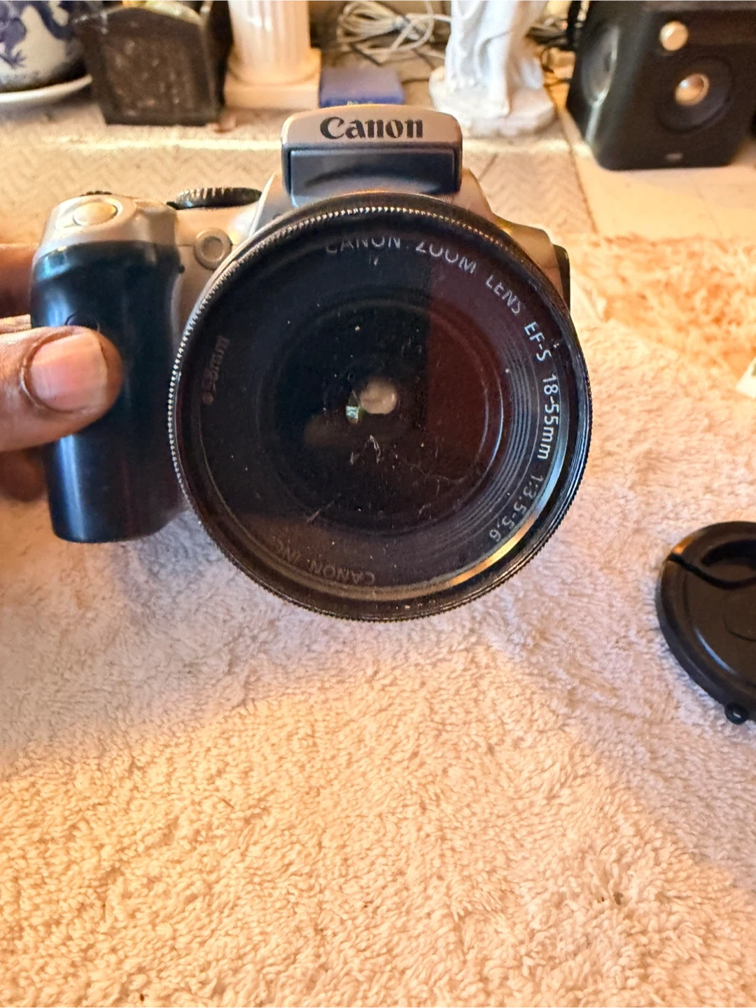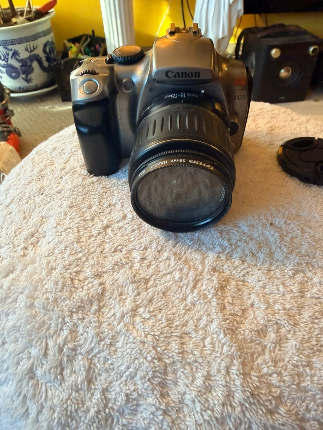 Selling a Canon EOS Rebel camera with an 18-55mm lens. It's in good condition and ready for a new photographer to enjoy! Comes with a lens cap as well