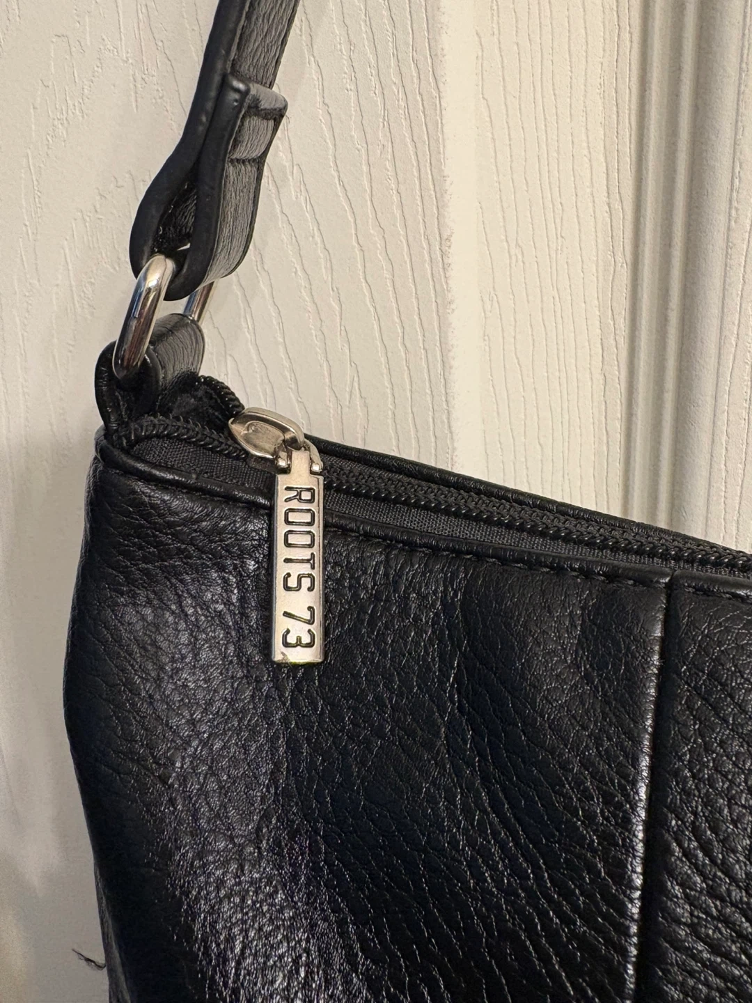 Selling a Roots 73 black cervino leather shoulder bag. It's in great condition, used only once, and has a classic, versatile style. Perfect for everyday use! Pick up in Chestermere.