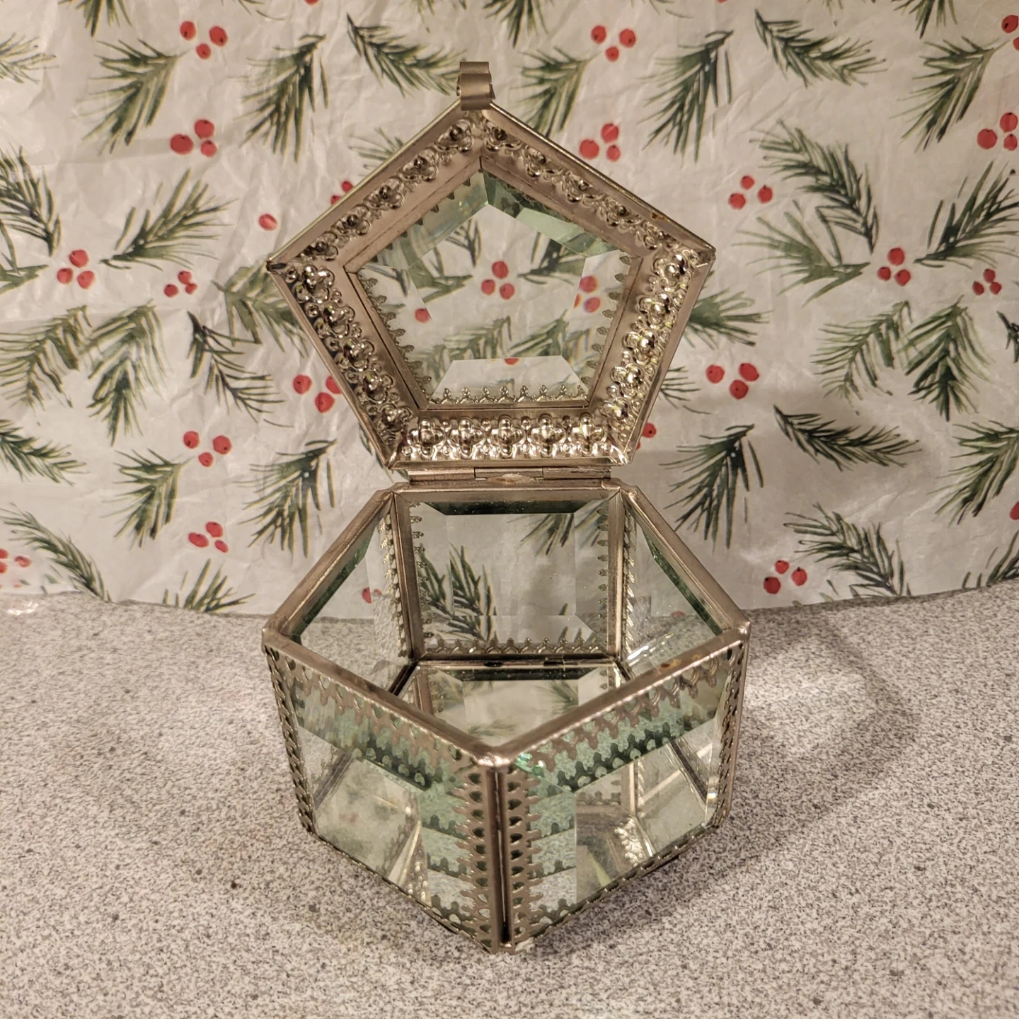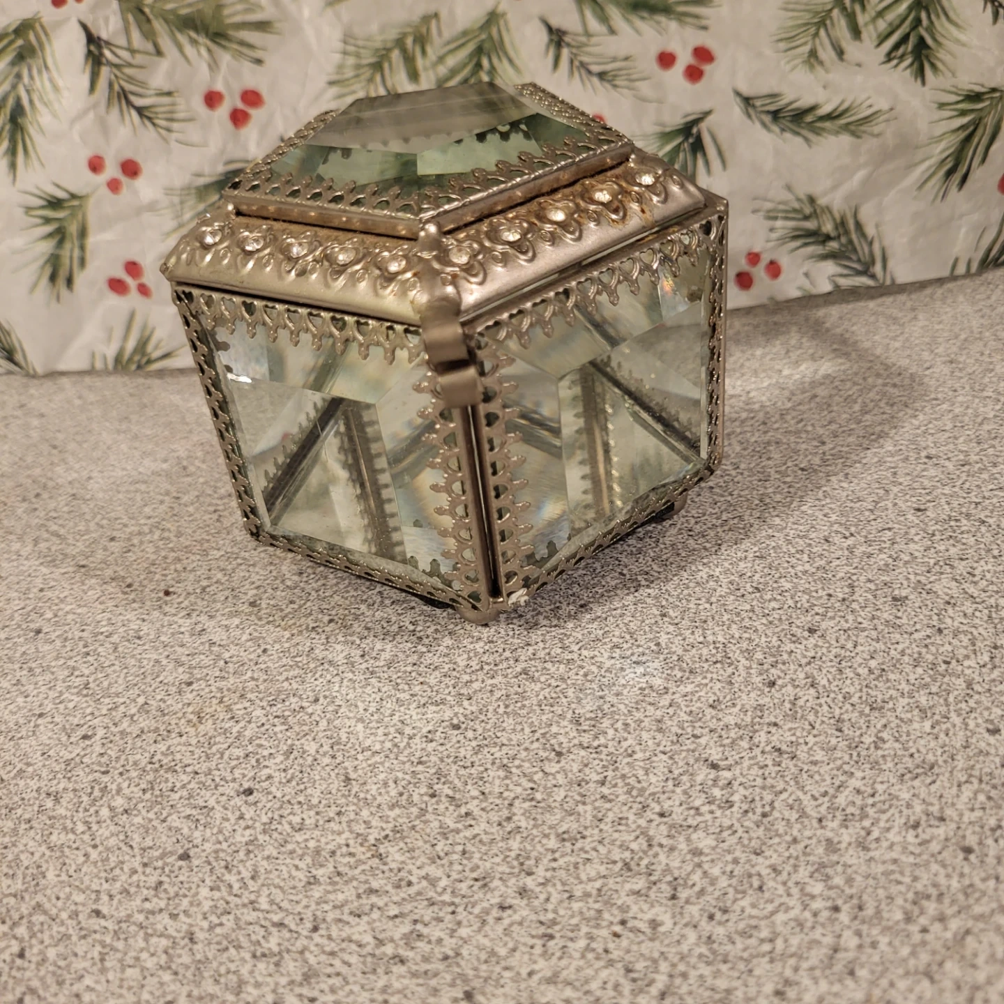 Selling a lovely glass and metal decorative box. It's in great condition and would look great on a dresser or shelf. Perfect for storing jewellery or small trinkets!