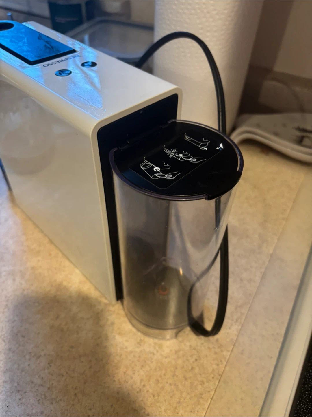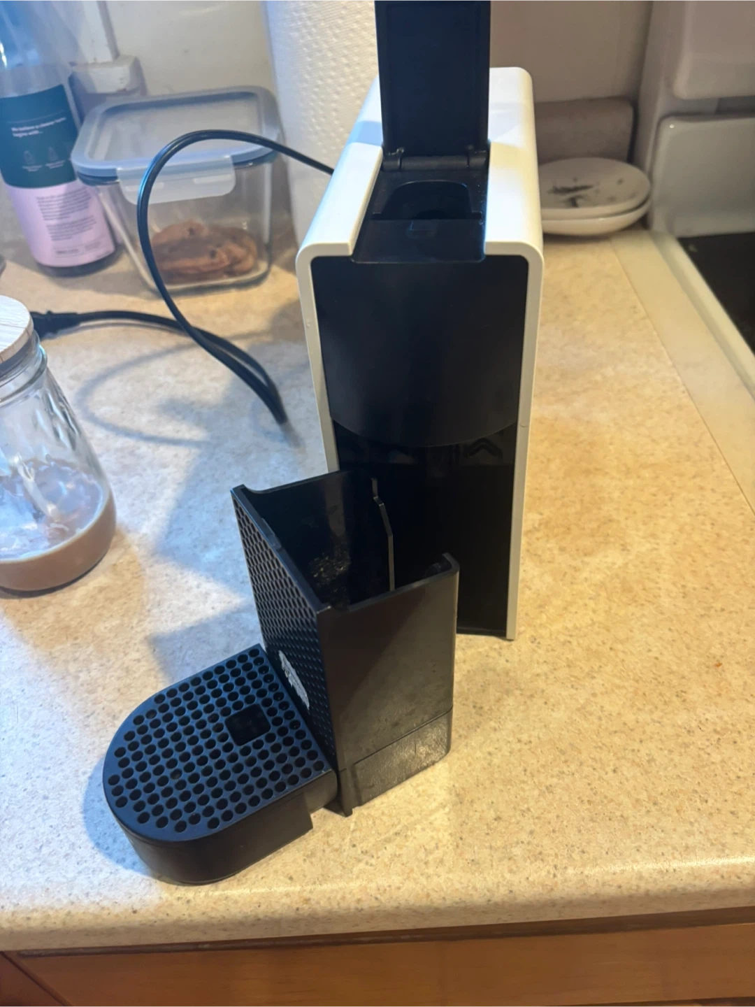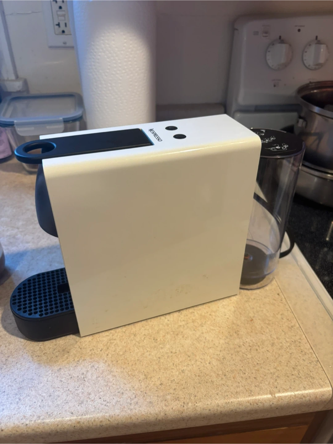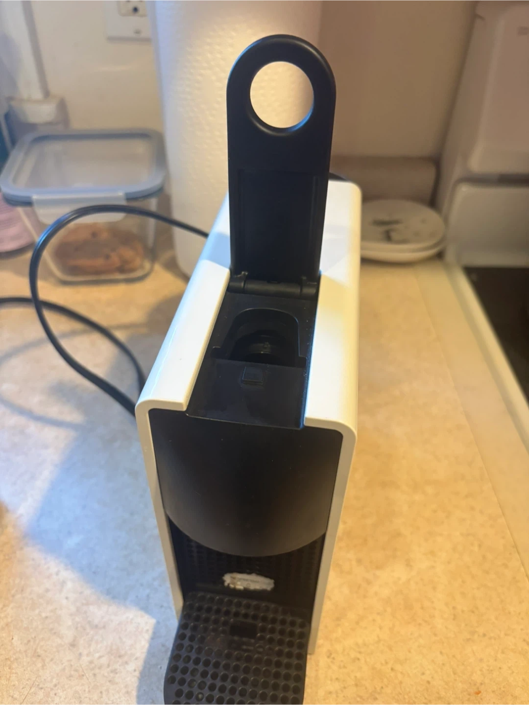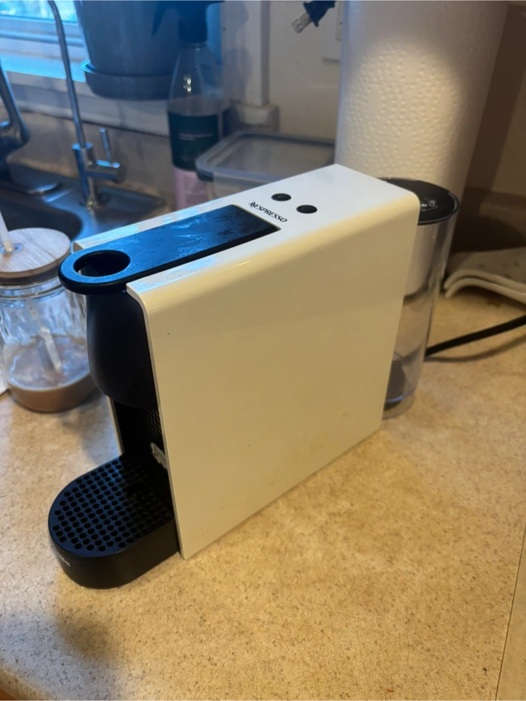 Selling a Nespresso Essenza Mini coffee maker in white! It's compact and easy to use, perfect for a quick espresso. It's in great condition and ready to make your mornings easier