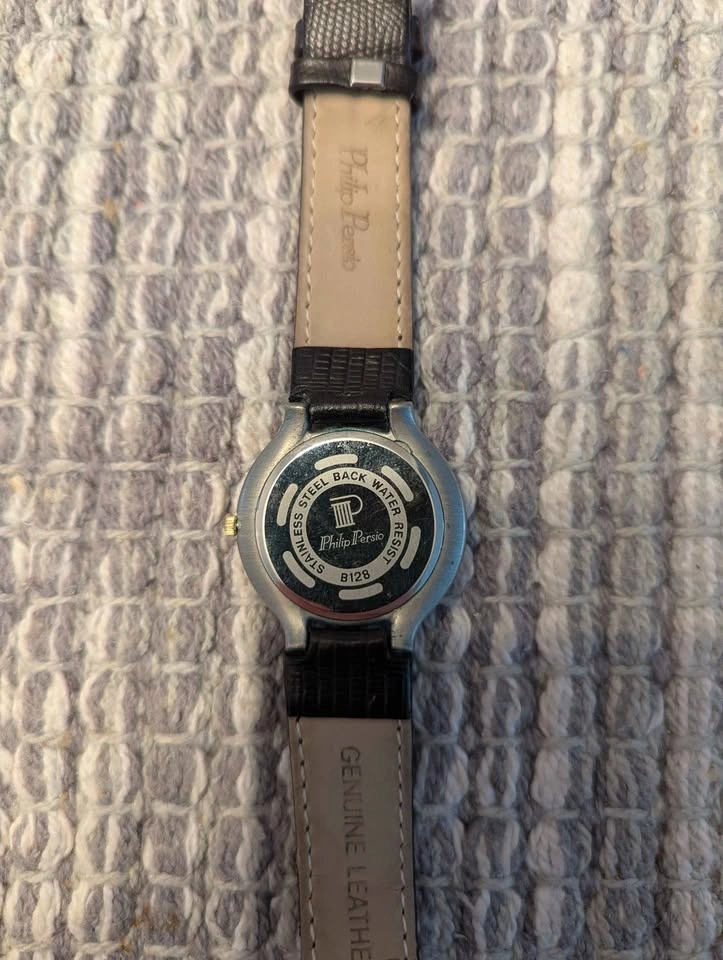 Great condition vintage Philip Persio watch with date window at the 6 placement. Still works great just needs a new battery. $50 obo. Price negotiable.