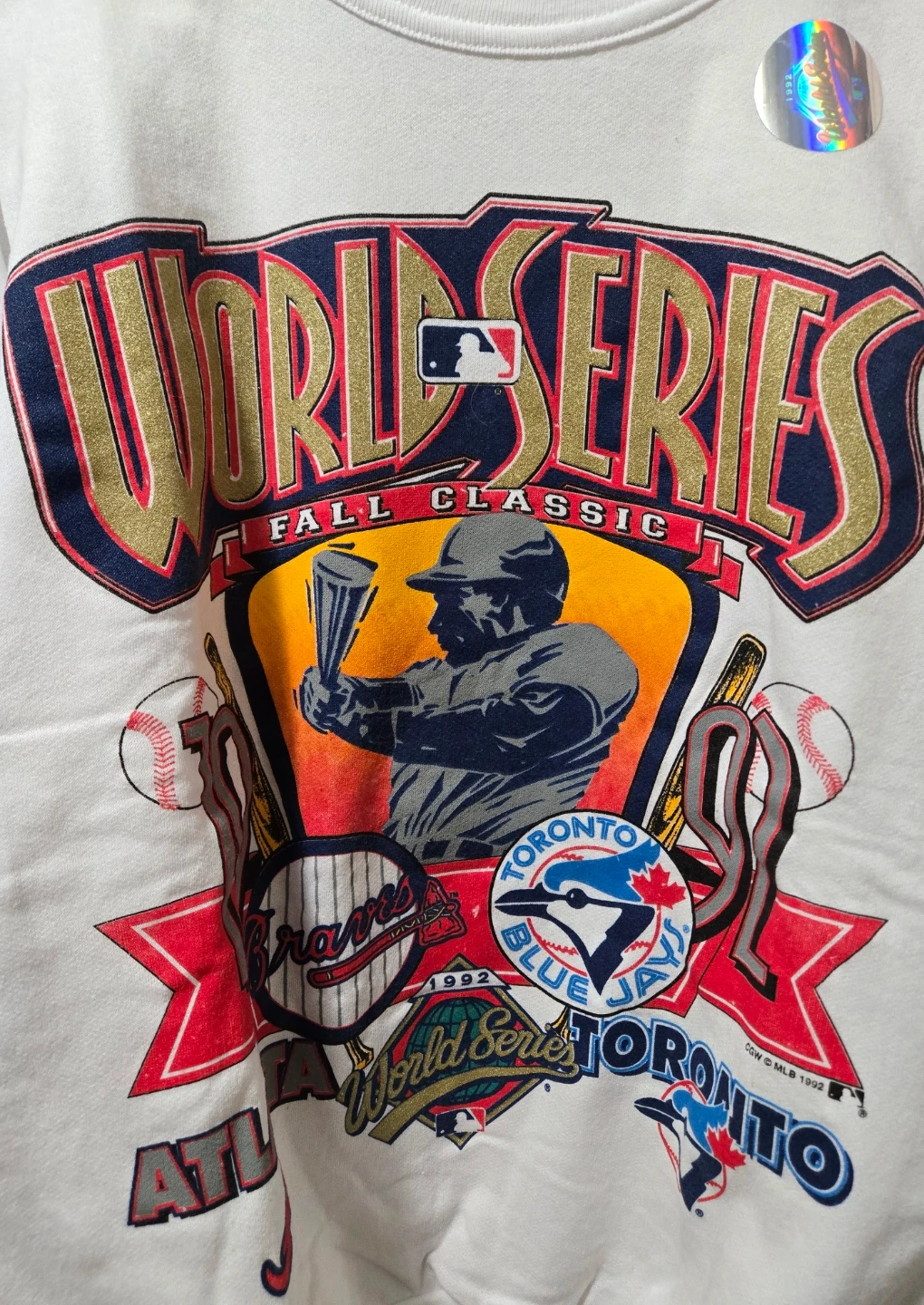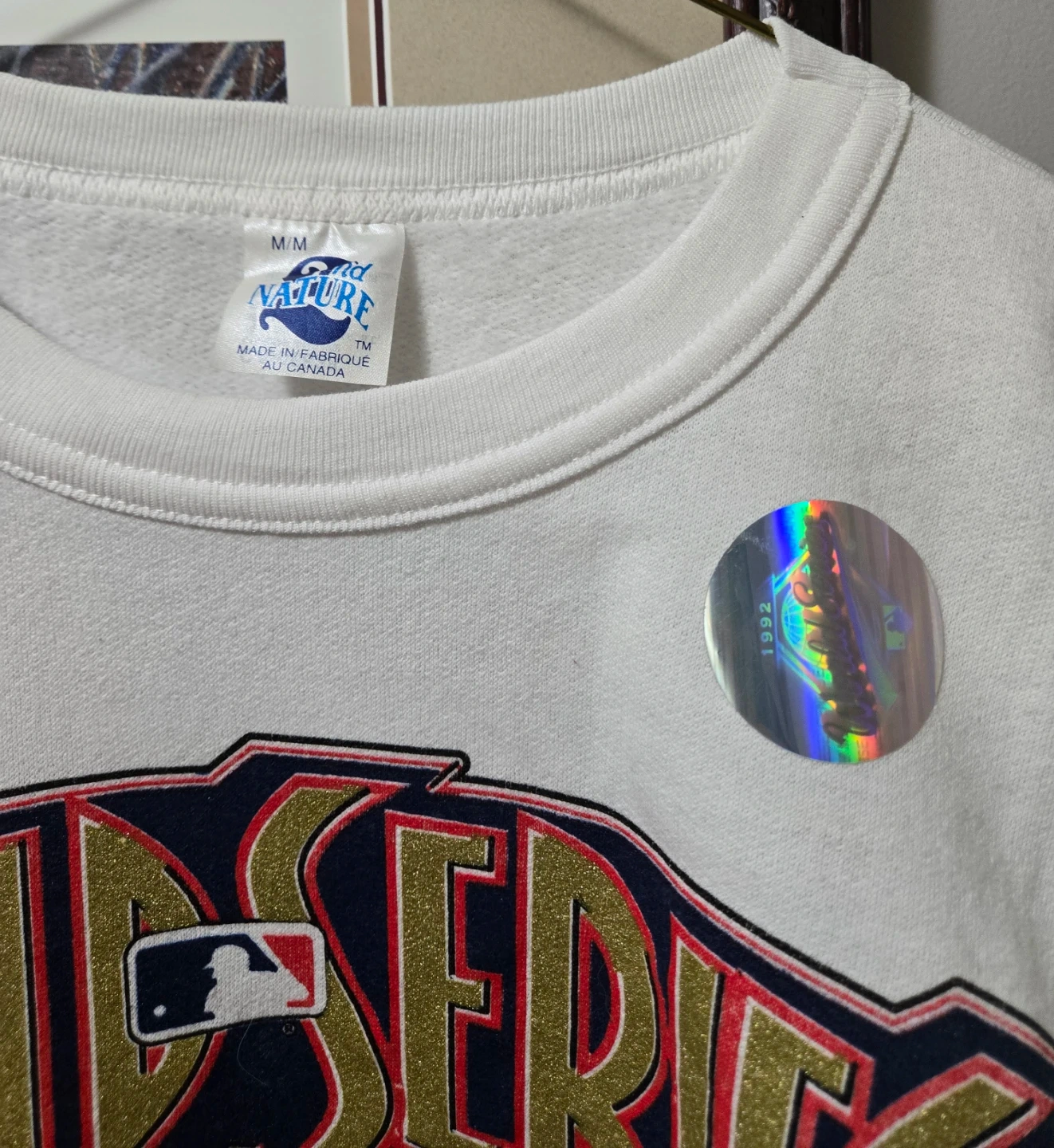 Selling a pair of Toronto Blue Jays 1992 World Series Championship sweatshirts. Like New, never worn. They still have the World Series halogram Tags attached. The Black Sweatshirt with the signatures is a Large Fruit of the Loom