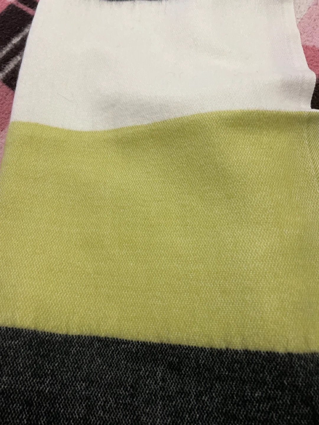 Cozy up with this stylish Reitmans blanket scarf! It features a modern striped design in black, white, and green. Made from 100% acrylic, it's soft and warm, perfect for those chilly Canadian days
