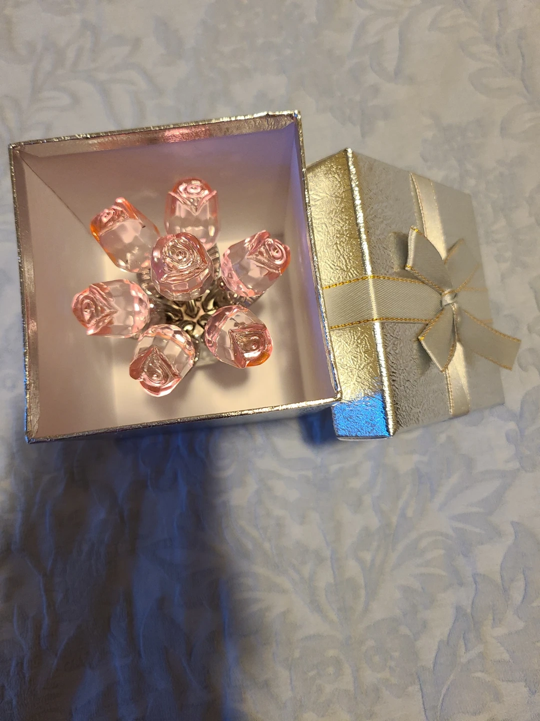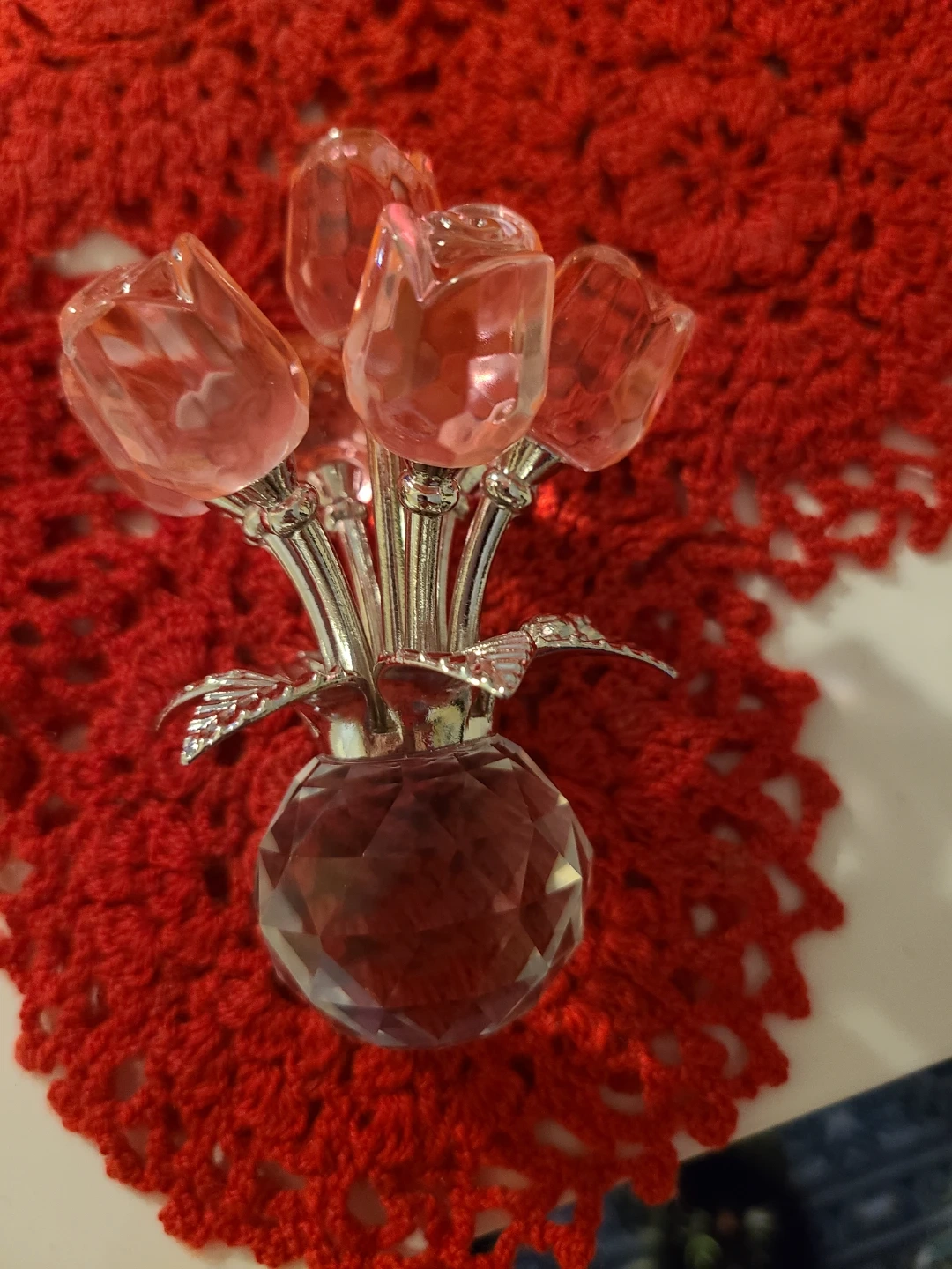 Selling a beautiful 4" Swarovski look crystal pink rose bouquet. It's in great condition and comes with its original box. This lovely piece would be a perfect addition to any collection or as a charming decorative item for your home