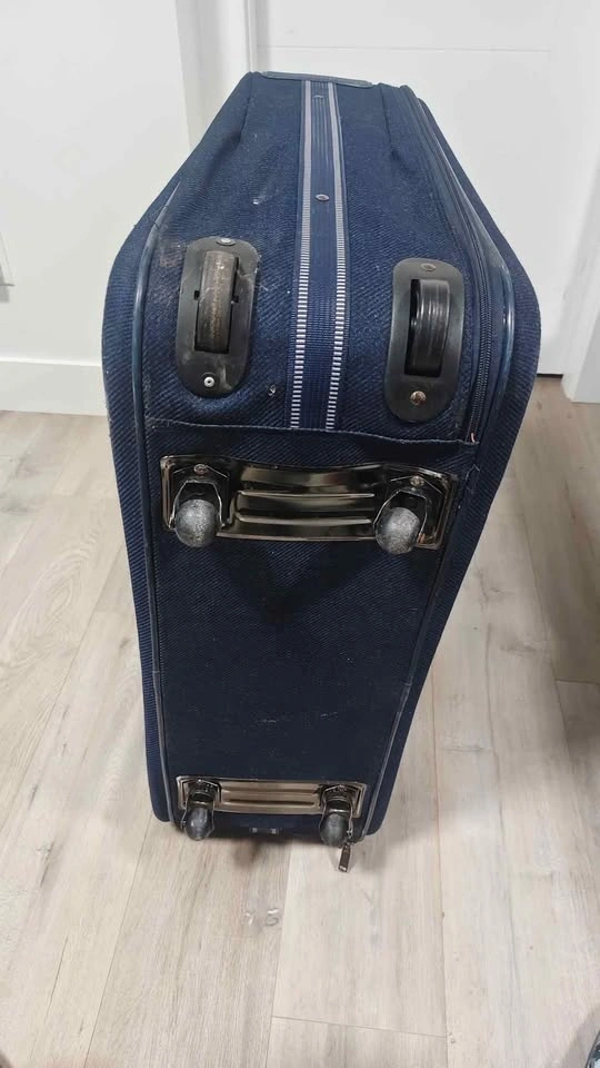 XL Navy blue suitcase/luggage with Wheels in perfect condition. Measures 24 inches wide and 16 inches tall.