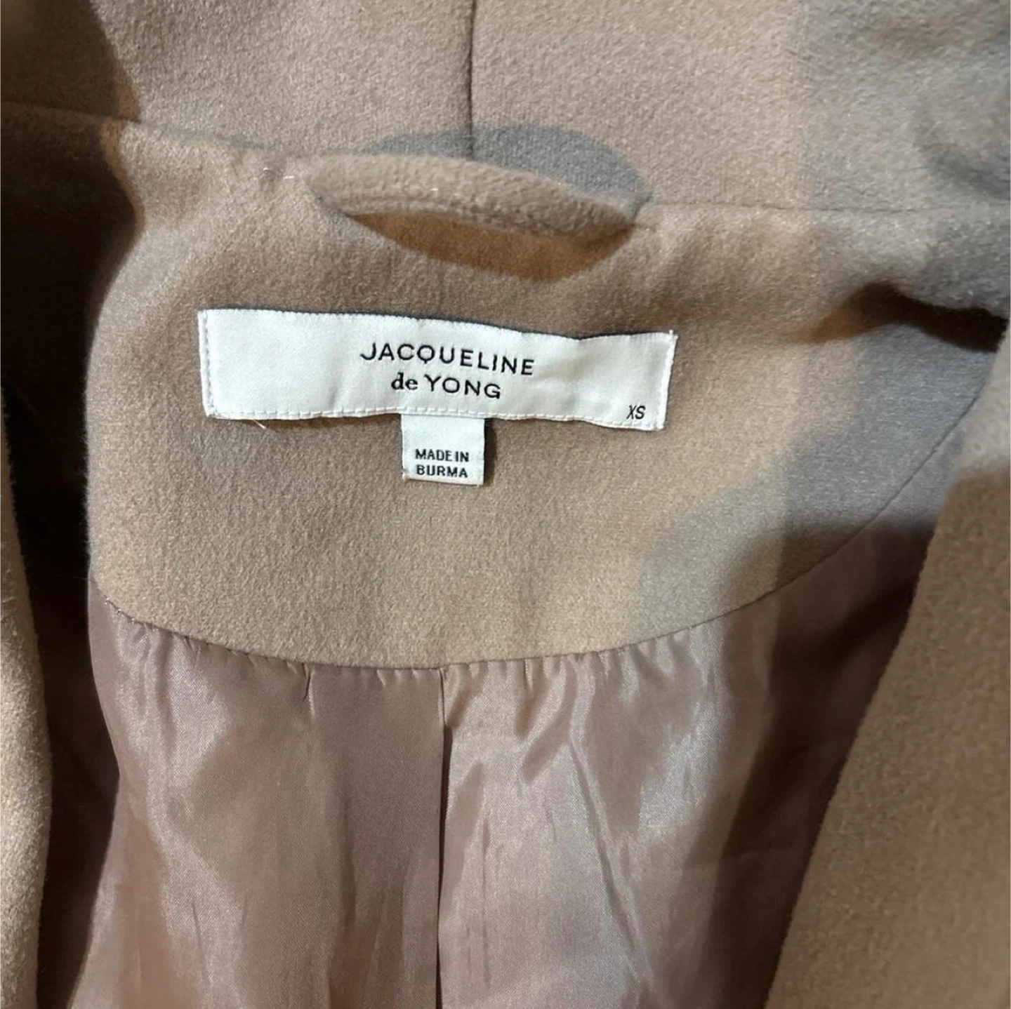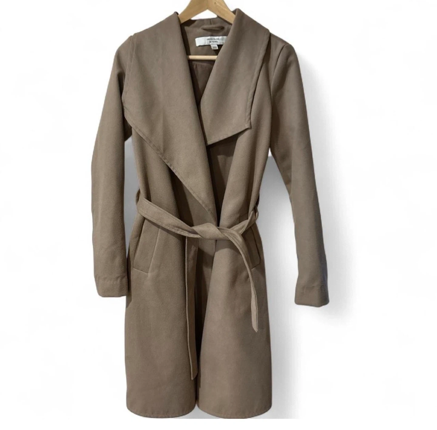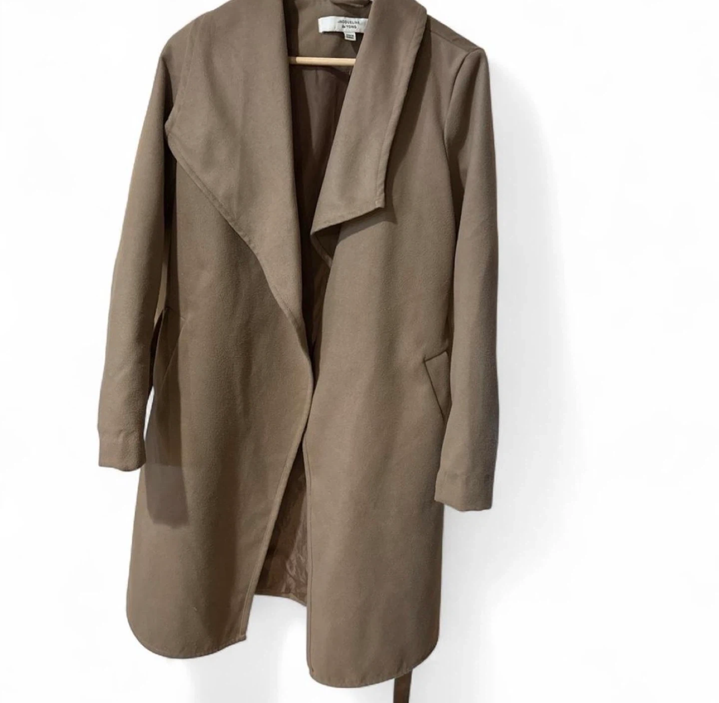Selling a Jacqueline de Yong coat in size XS! It features a belted design and a stylish beige color, perfect for layering