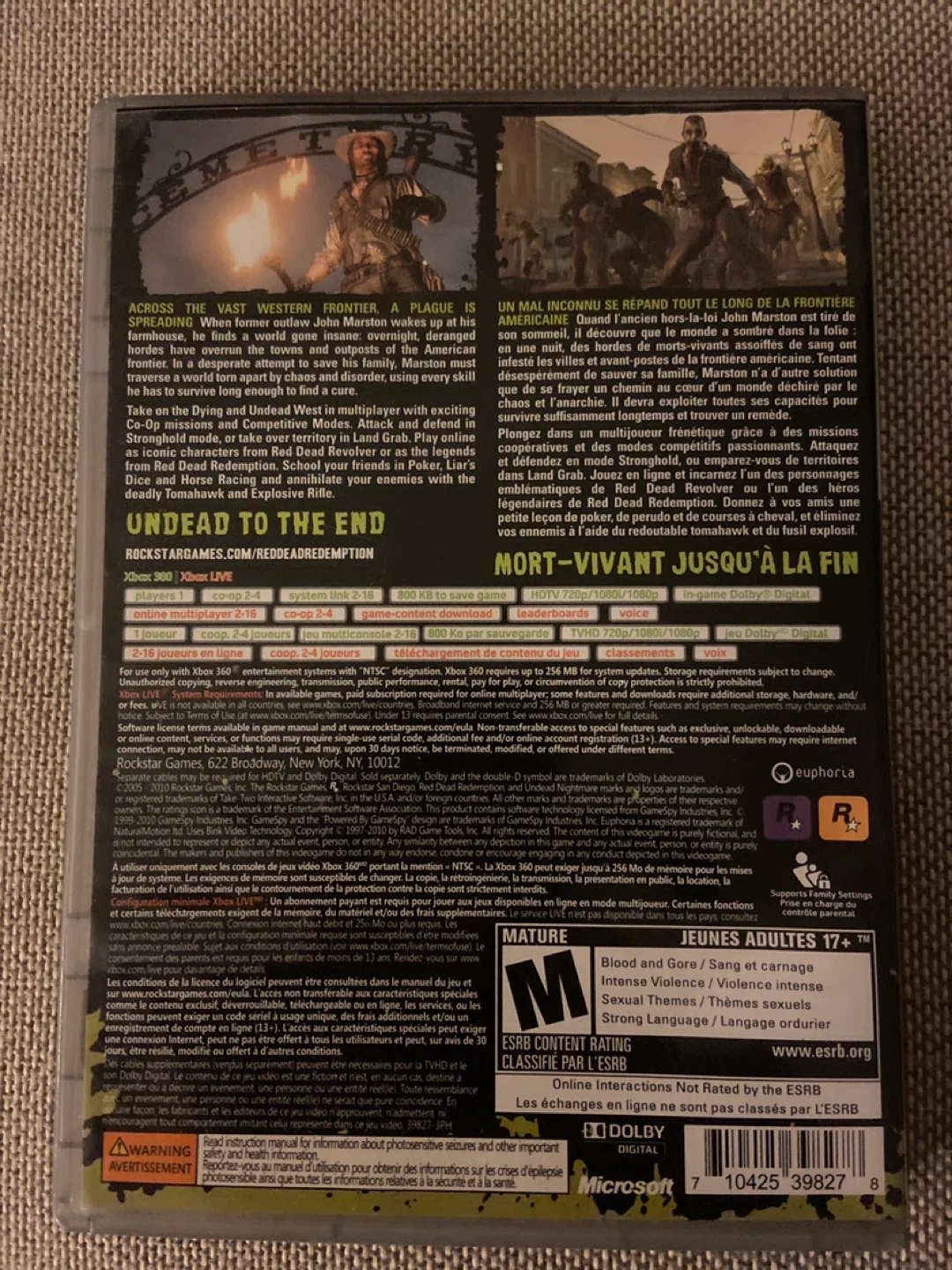 Selling Red Dead Redemption: Undead Nightmare for the Xbox 360! This game is rated M for Mature and includes intense violence, blood, and gore. Get ready to take on the undead in the Wild West!