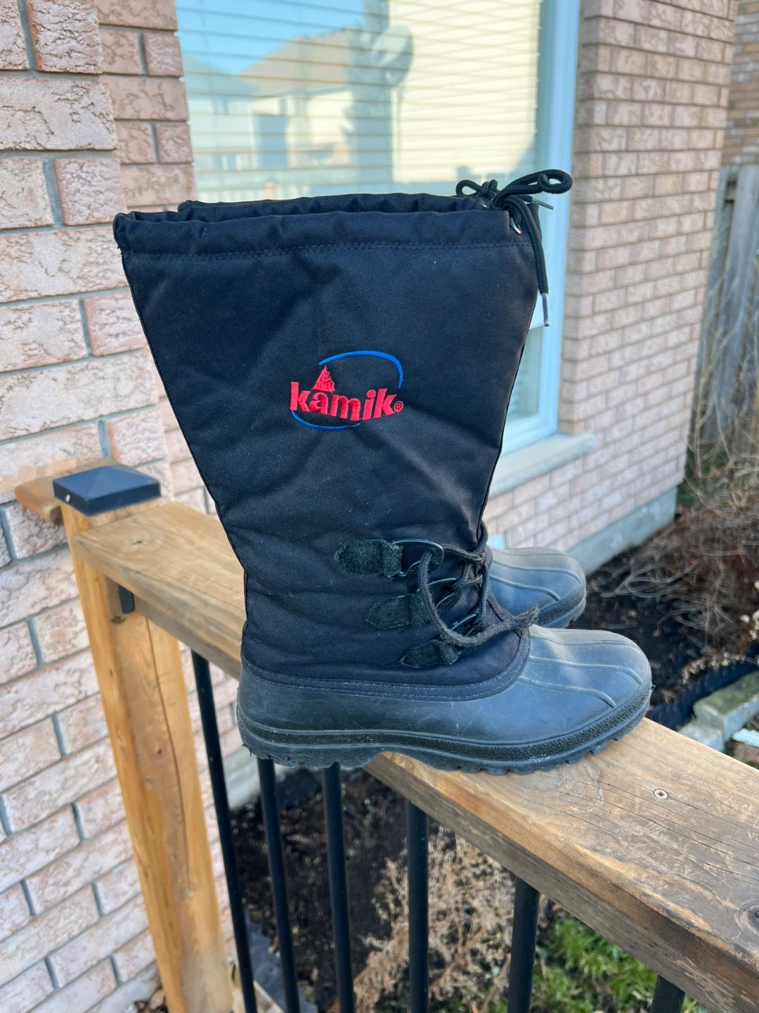 Keep your feet warm this winter with these Kamik winter boots in size 9. They are black and ready for the snow