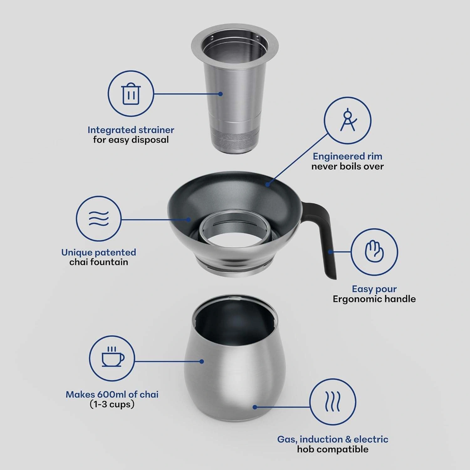 Easy clean with ceramic non stick coating. Made without potentially toxic materials like PFAS (including PTFEs (like Teflon and PFOAs), lead and cadmium, you can brew with peace of mind. We use only the very best materials to ensure our Chai Maker is effortlessly easy to clean.