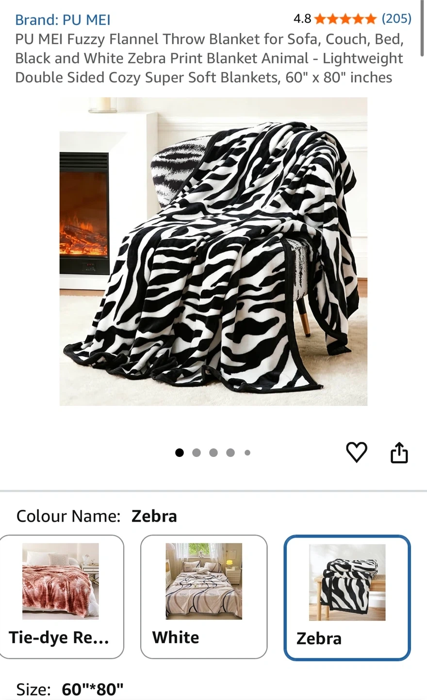 60x80” Large Throw Blanket Zebra Flannel 300 GSM - NEW