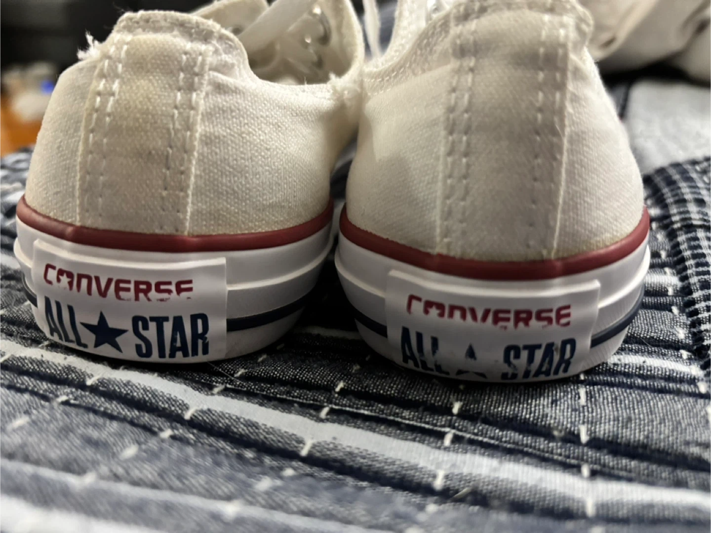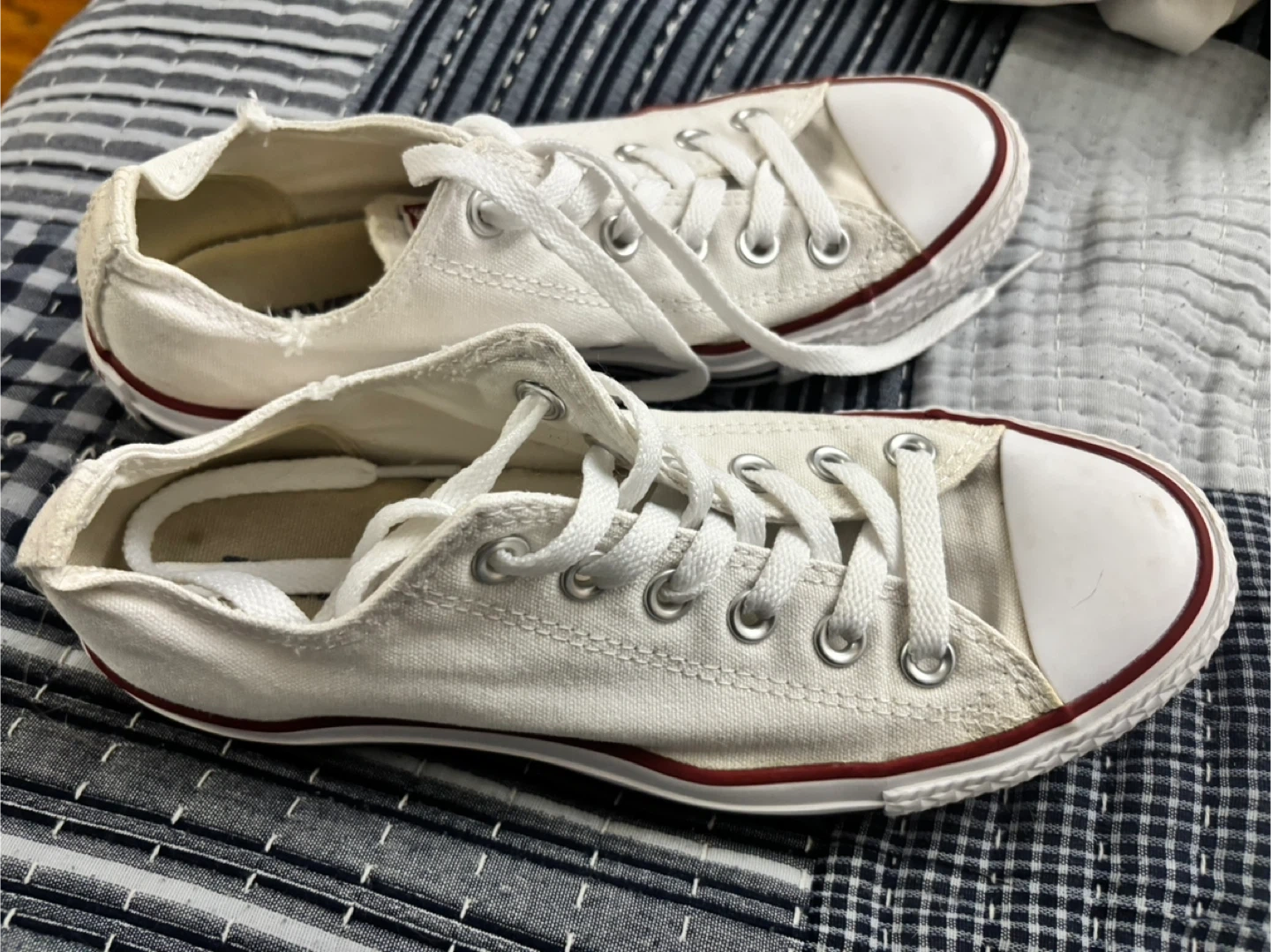 Selling a pair of Converse All Star sneakers in a women's size 7. They're in good condition and ready for a new owner! The classic white colour goes with everything