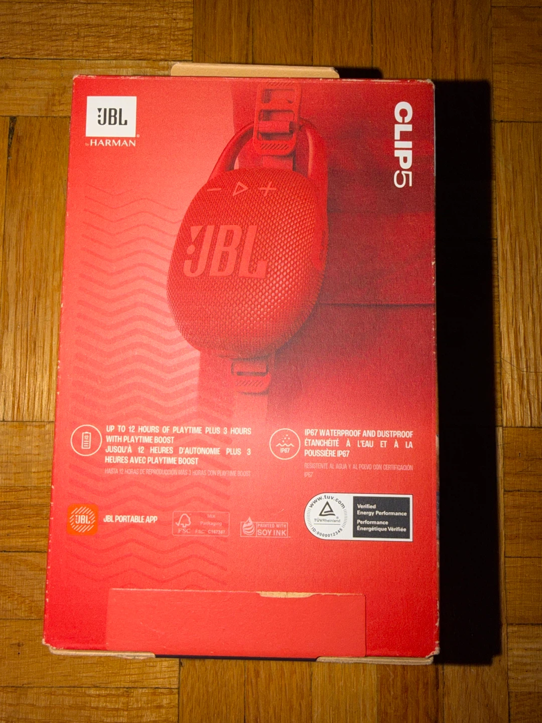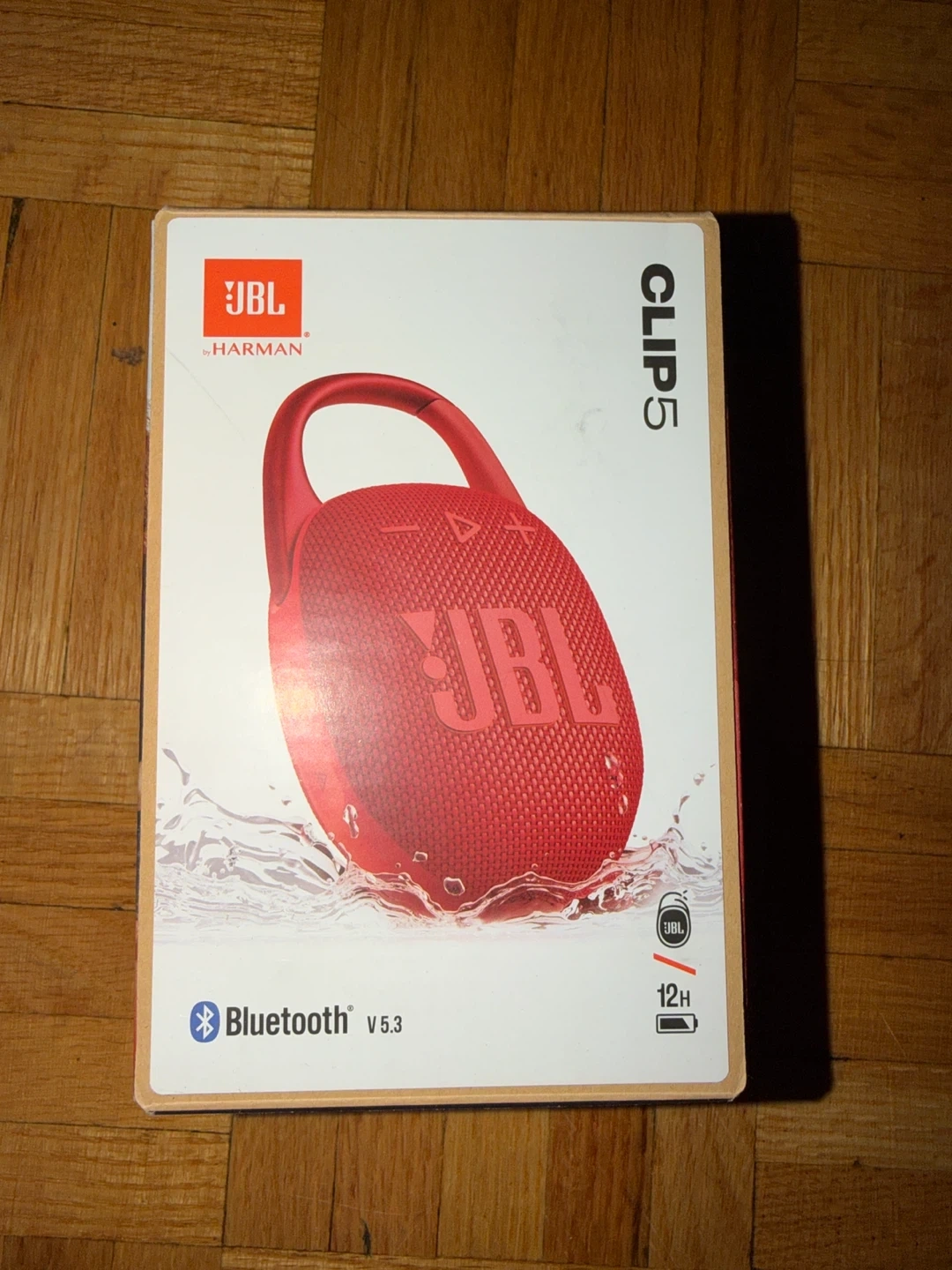 Selling a brand new JBL Clip 5 Bluetooth speaker in red! It's still in the box and has never been used.