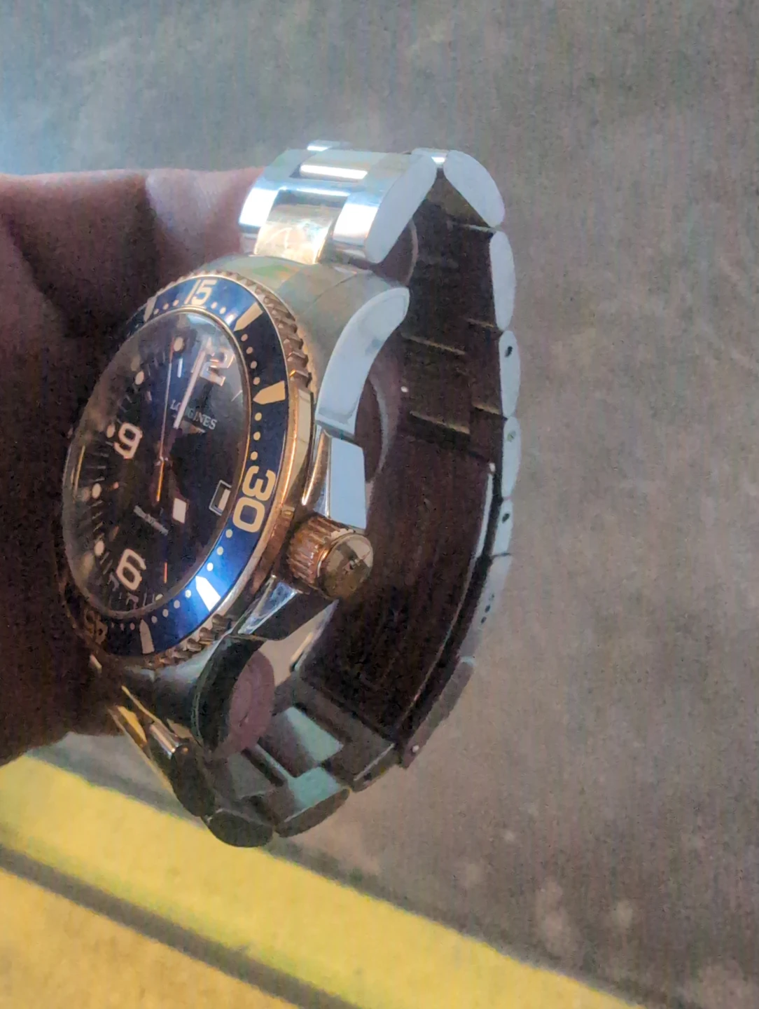 Selling a Longines HydroConquest automatic watch. It features a stainless steel and gold-tone bracelet. The watch is in good condition and ready for a new wrist