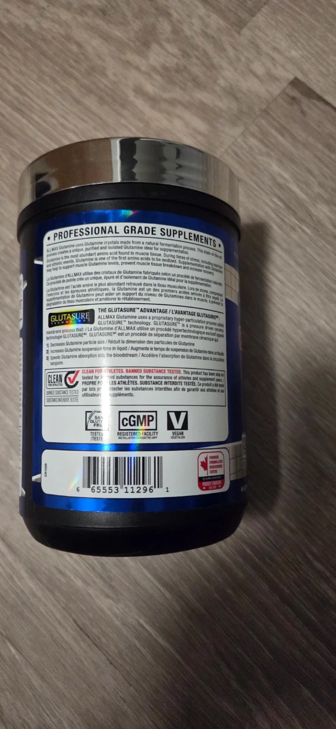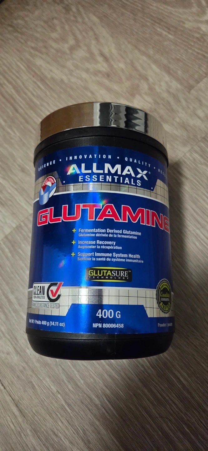 Selling a container of Allmax Essentials Glutamine, 400g. It supports immune system health and increases recovery after fermentation.
