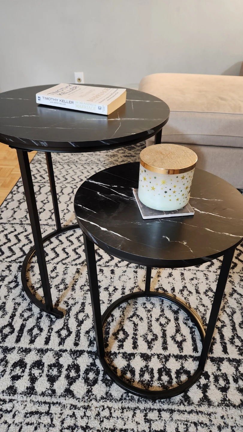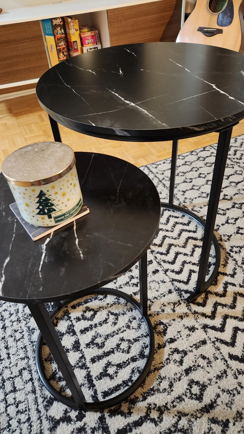 Black Marble-Finish Coffee Tables set (2 new pcs)