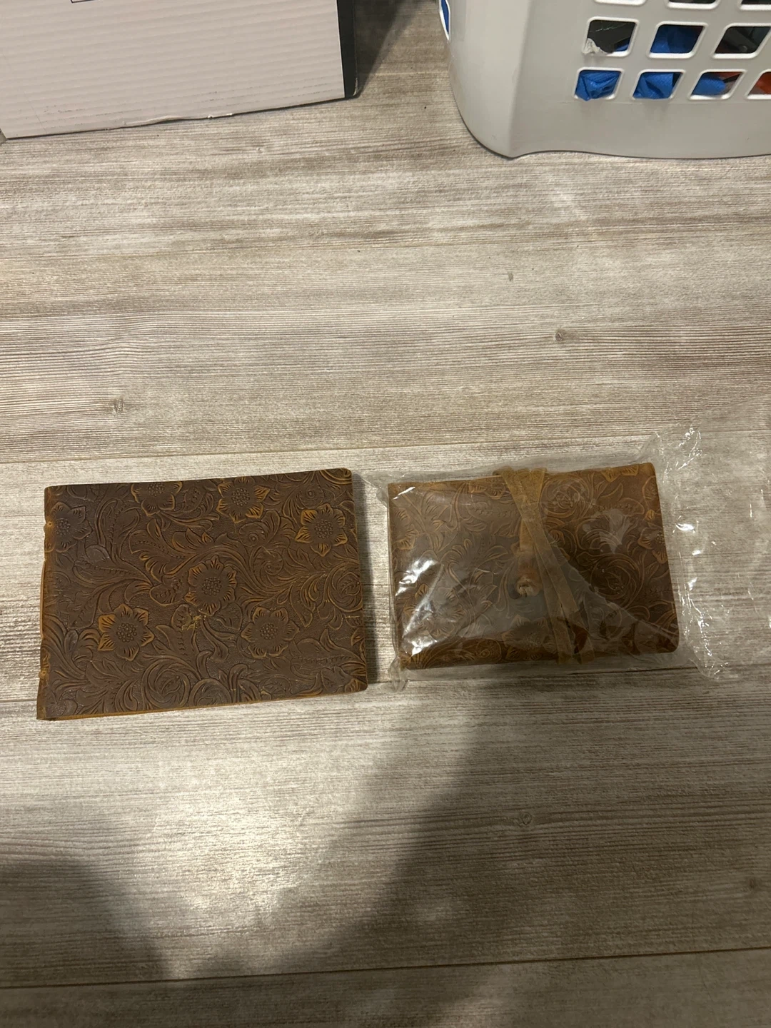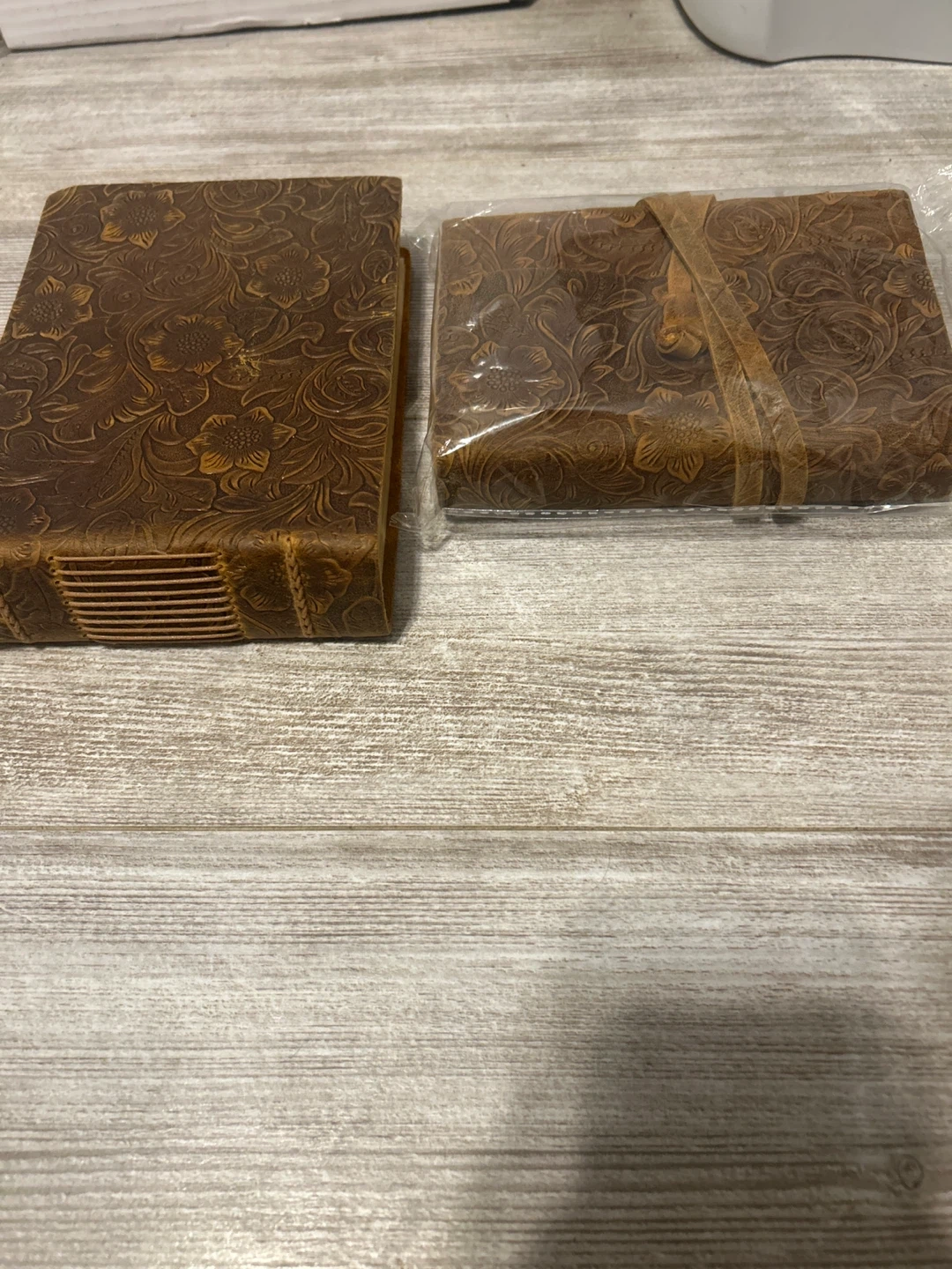 Selling a brand new brown leather journal notebook! It has a beautiful floral design embossed on the cover. Perfect for writing, sketching, or as a personal diary. The notebook is still in its original packaging.