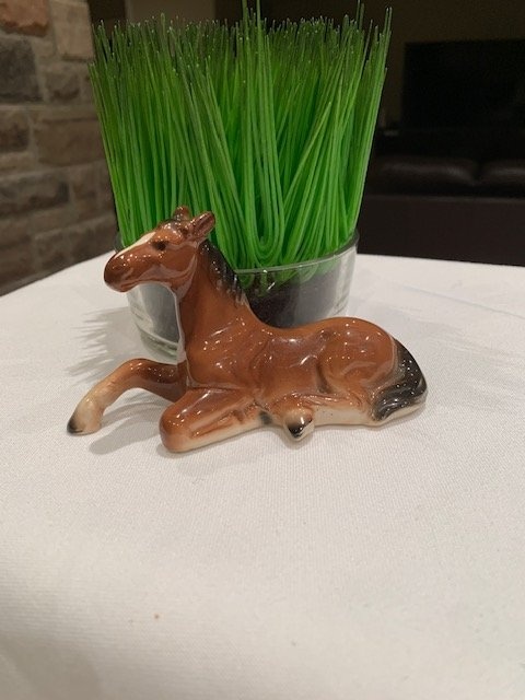 Horse Porcelain Figure " Foal Lying Brown Made In Japan MCM "