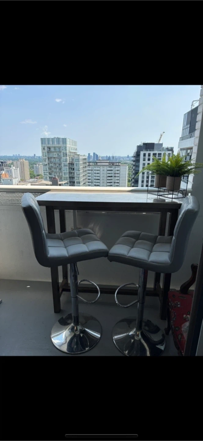 3 Pieces Table Set metal Bar with High leather-metal Stools for Home