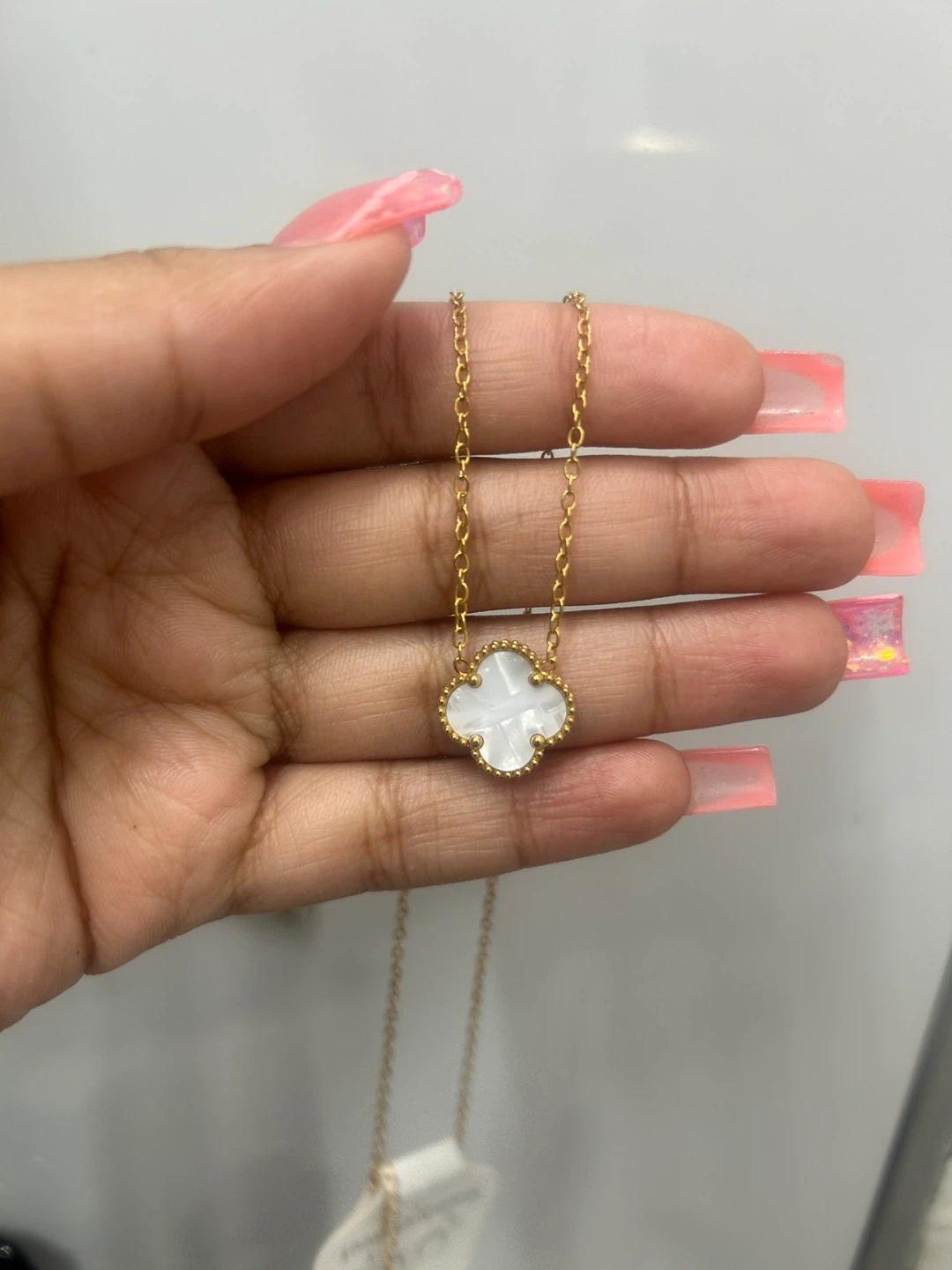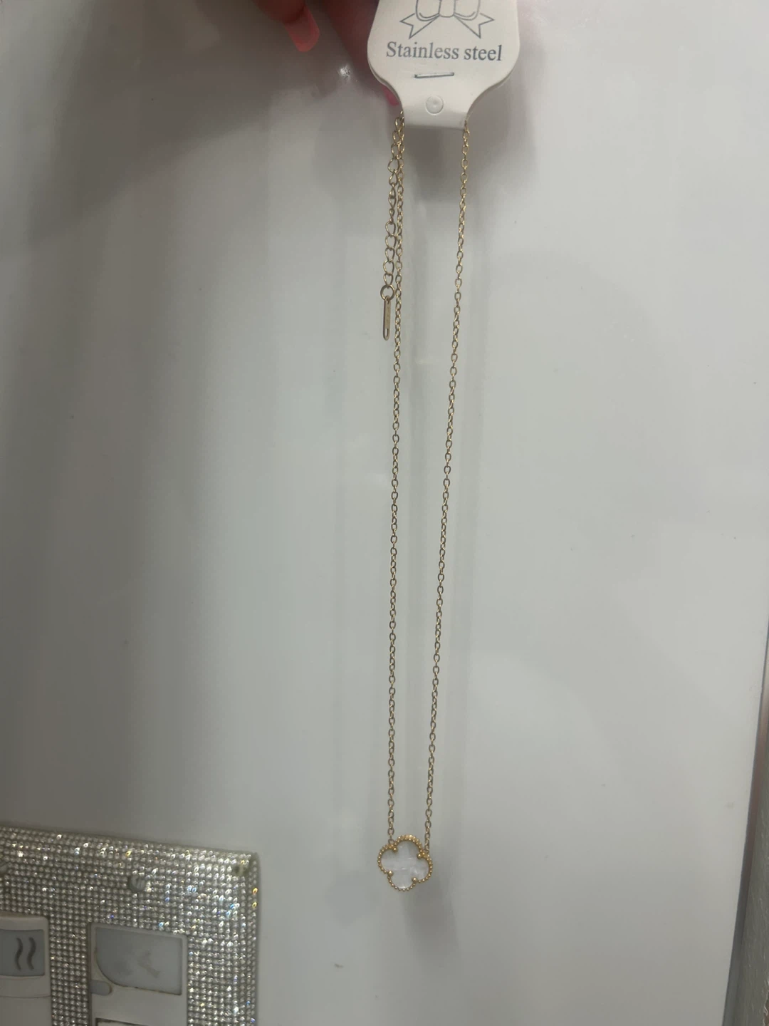 Selling a cute gold-tone necklace featuring a clover pendant! It's made of stainless steel and is in brand new condition. Never been used.