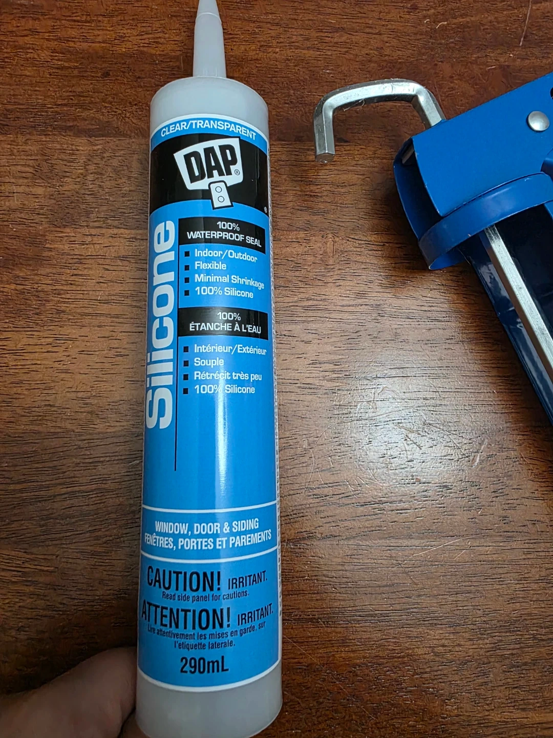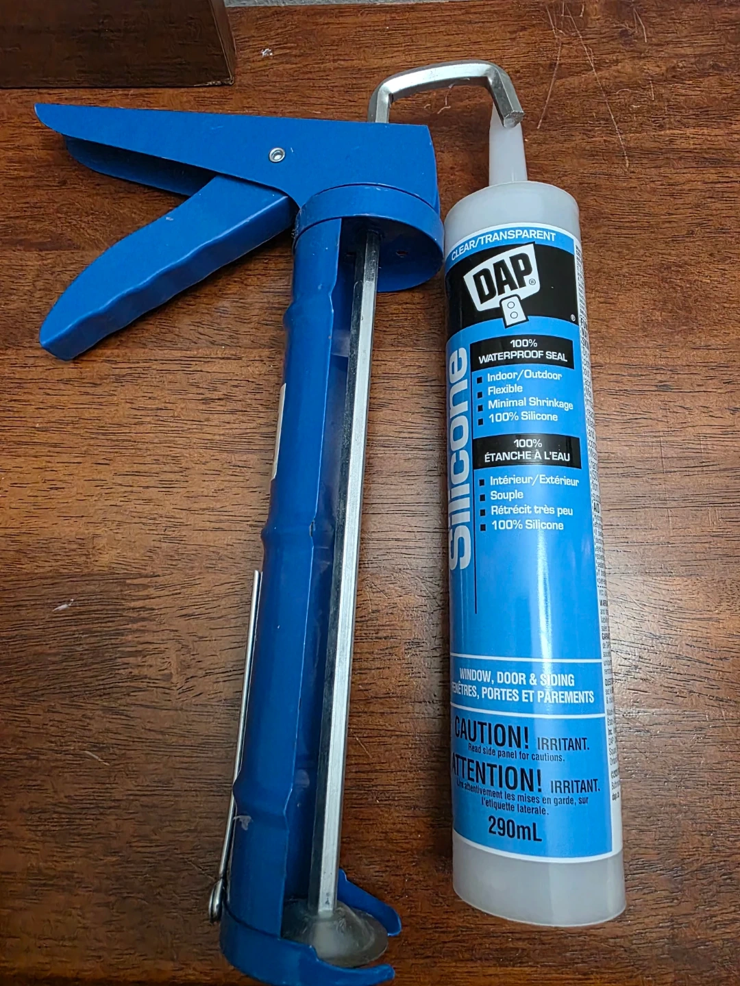 Selling a tube of DAP Silicone sealant, perfect for indoor or outdoor use! It's 100% waterproof and provides a flexible seal with minimal shrinkage. Also included is a blue caulking gun to make application a breeze