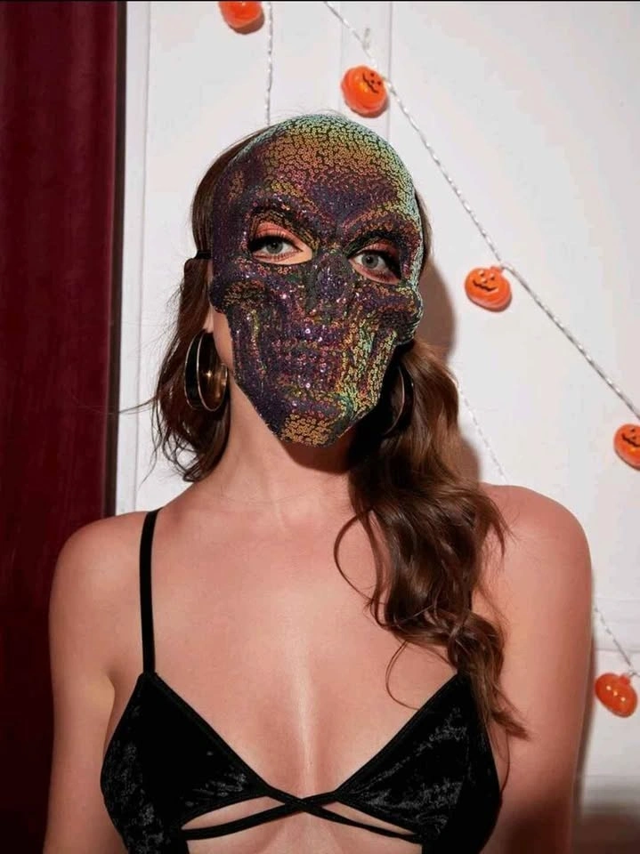 Holographic Multicolor Sequin Skull Mask * Party * Decor * NEW