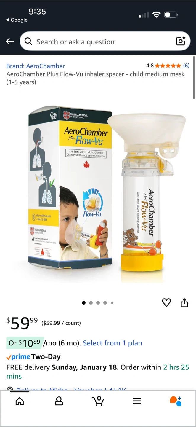 Selling a brand new AeroChamber Plus Flow-Vu with a medium mask, perfect for kids aged 1-5 years! It's still sealed in its original packaging.