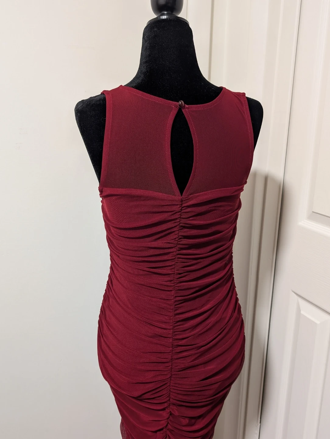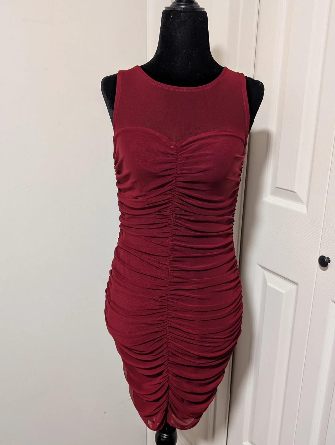 Selling a burgundy ruched bodycon dress. It's in great condition and ready for a night out! The ruching detail is very flattering and the colour is gorgeous