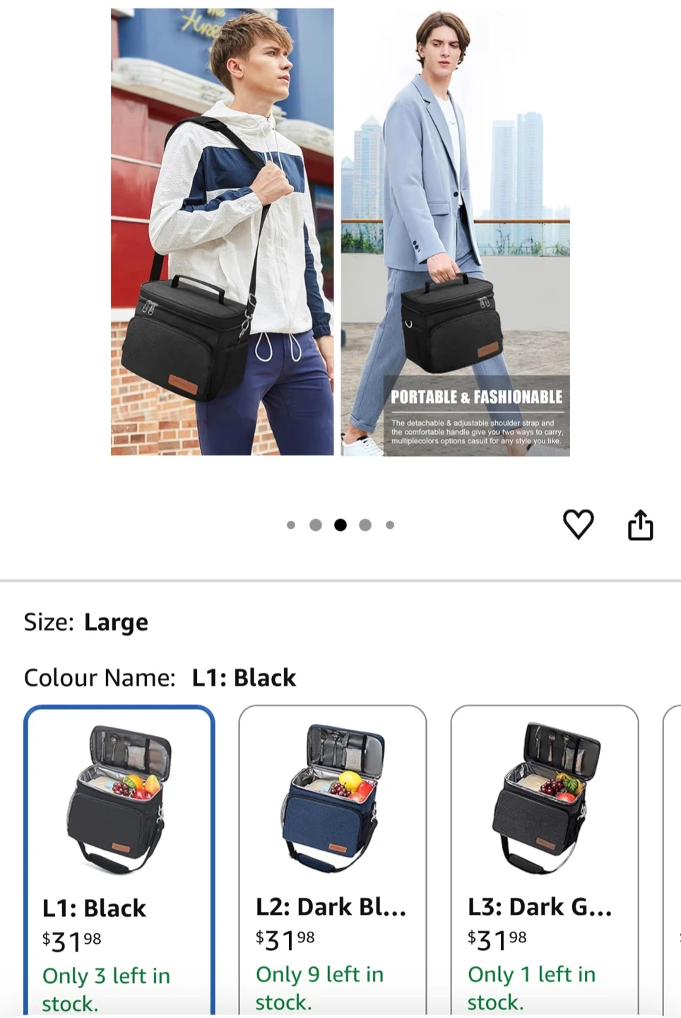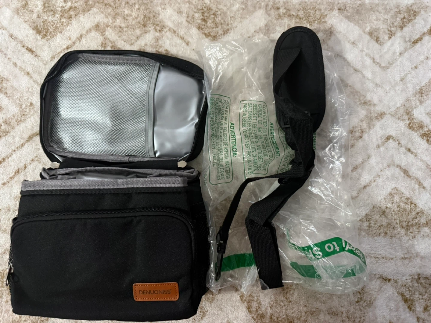 Keep your lunch cool with this DENUONISS insulated lunch bag! It's black and a size large. It's both portable and fashionable, featuring a detachable and adjustable shoulder strap. The comfortable handle gives you two ways to carry it