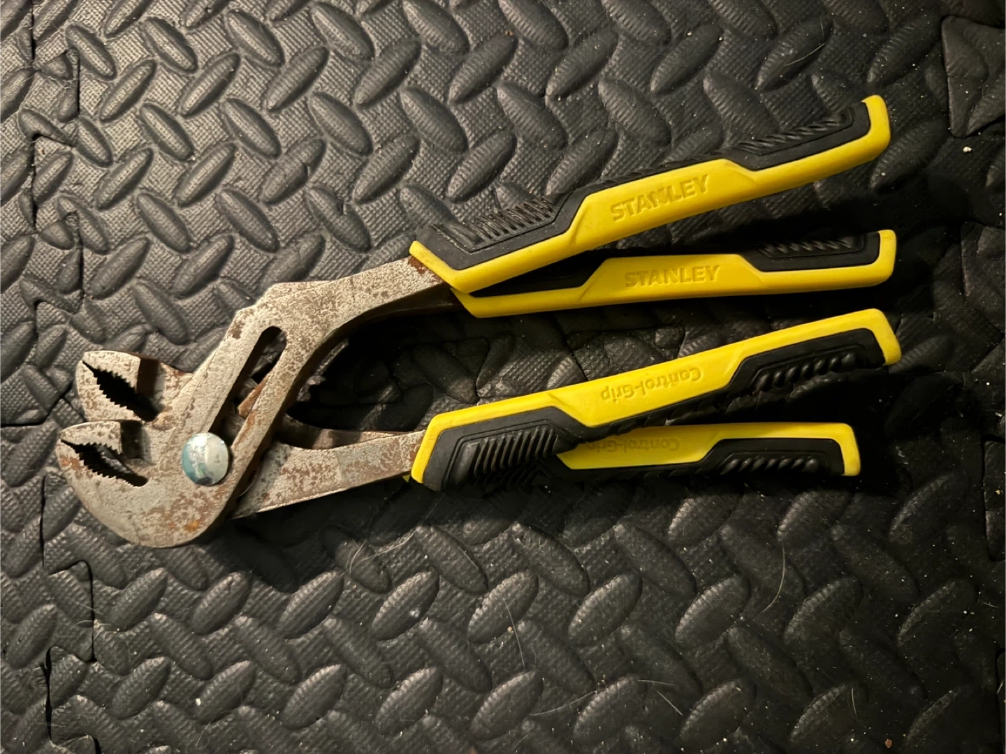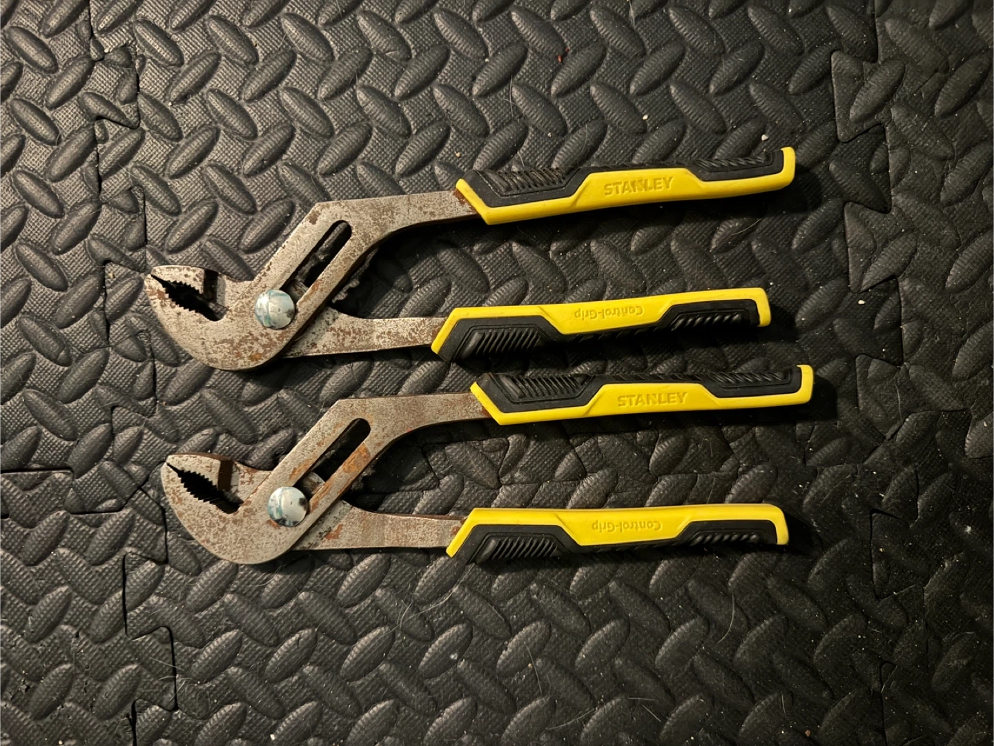 Selling a pair of Stanley Control-Grip groove joint pliers. They're showing some signs of use, but still have plenty of life left in them. The yellow and black handles provide a comfortable and secure grip