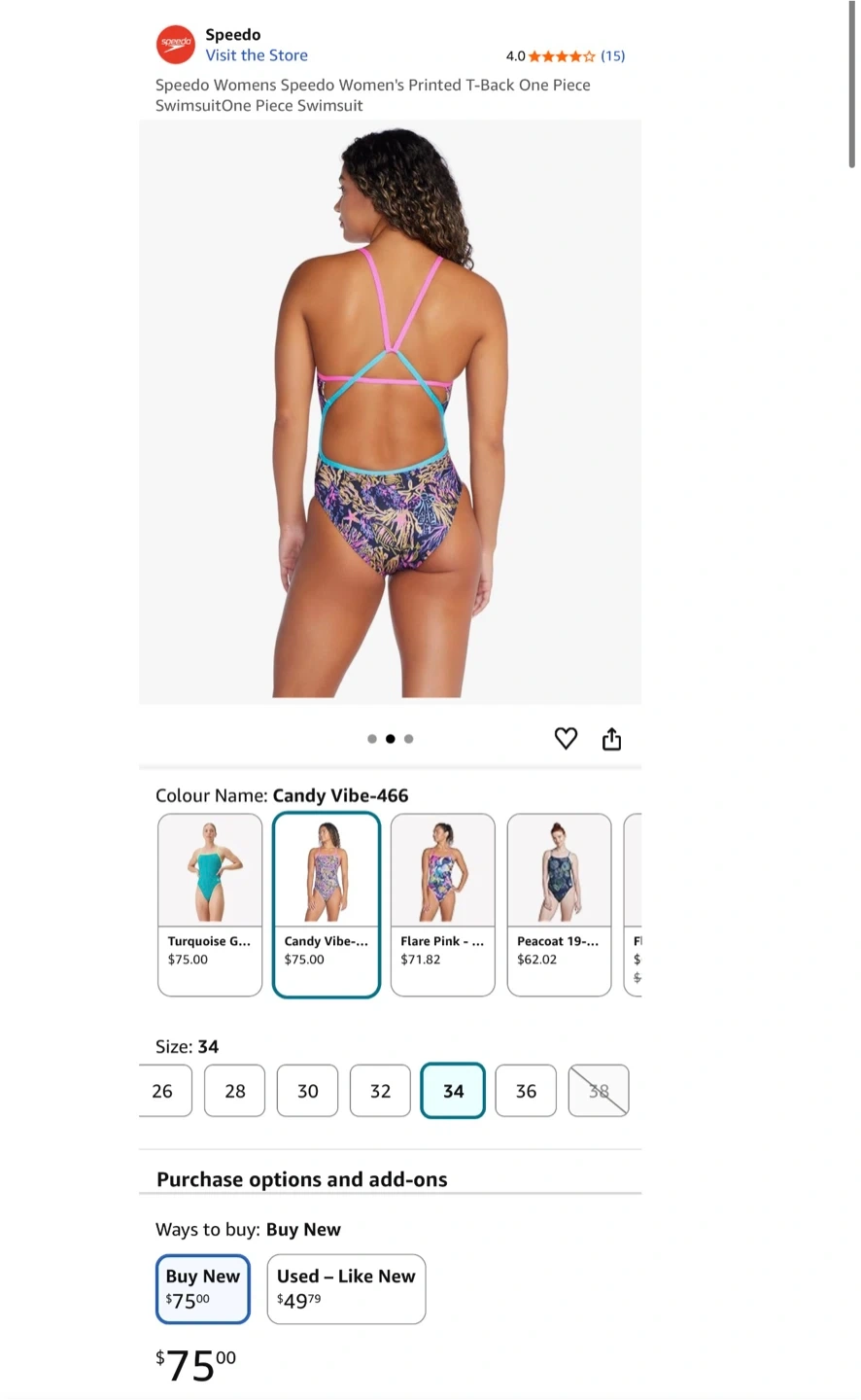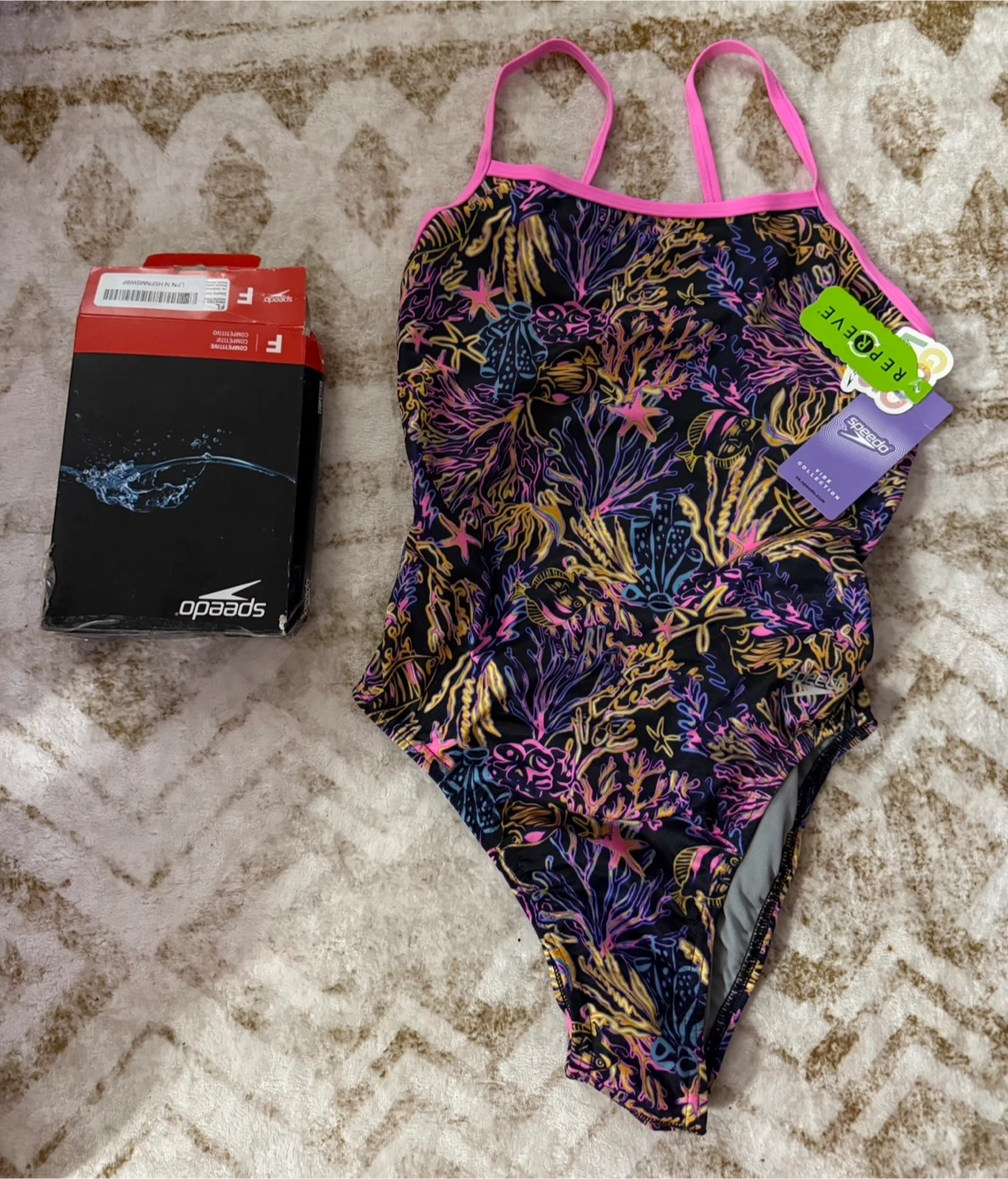 Selling a brand new with tags Speedo Women's Printed T-Back One Piece Swimsuit in size 34! The colour is Candy Vibe-466 Retails for $75