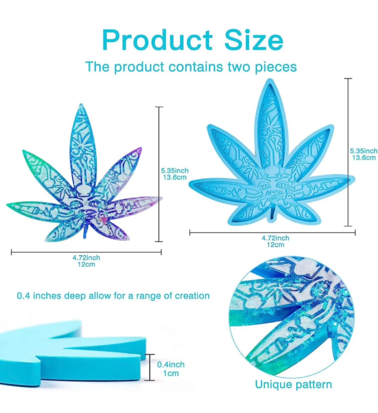 I'm selling a set of silicone molds. The set includes various shapes such as oval, leaf, and square. The leaf molds are approximately 5.35 inches (13.6cm) in height and 4.72 inches (12cm) in width. The molds are made of safe material, are easy to clean, and solid and durable, making demoulding quick and easy! Looking to sell as a set, will consider offers for individual items.