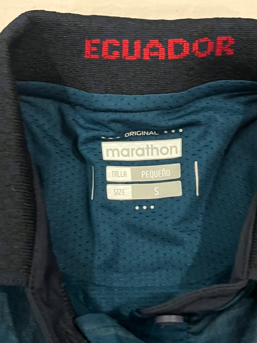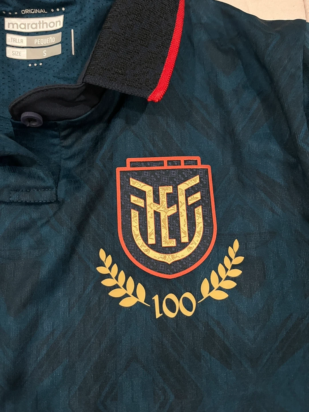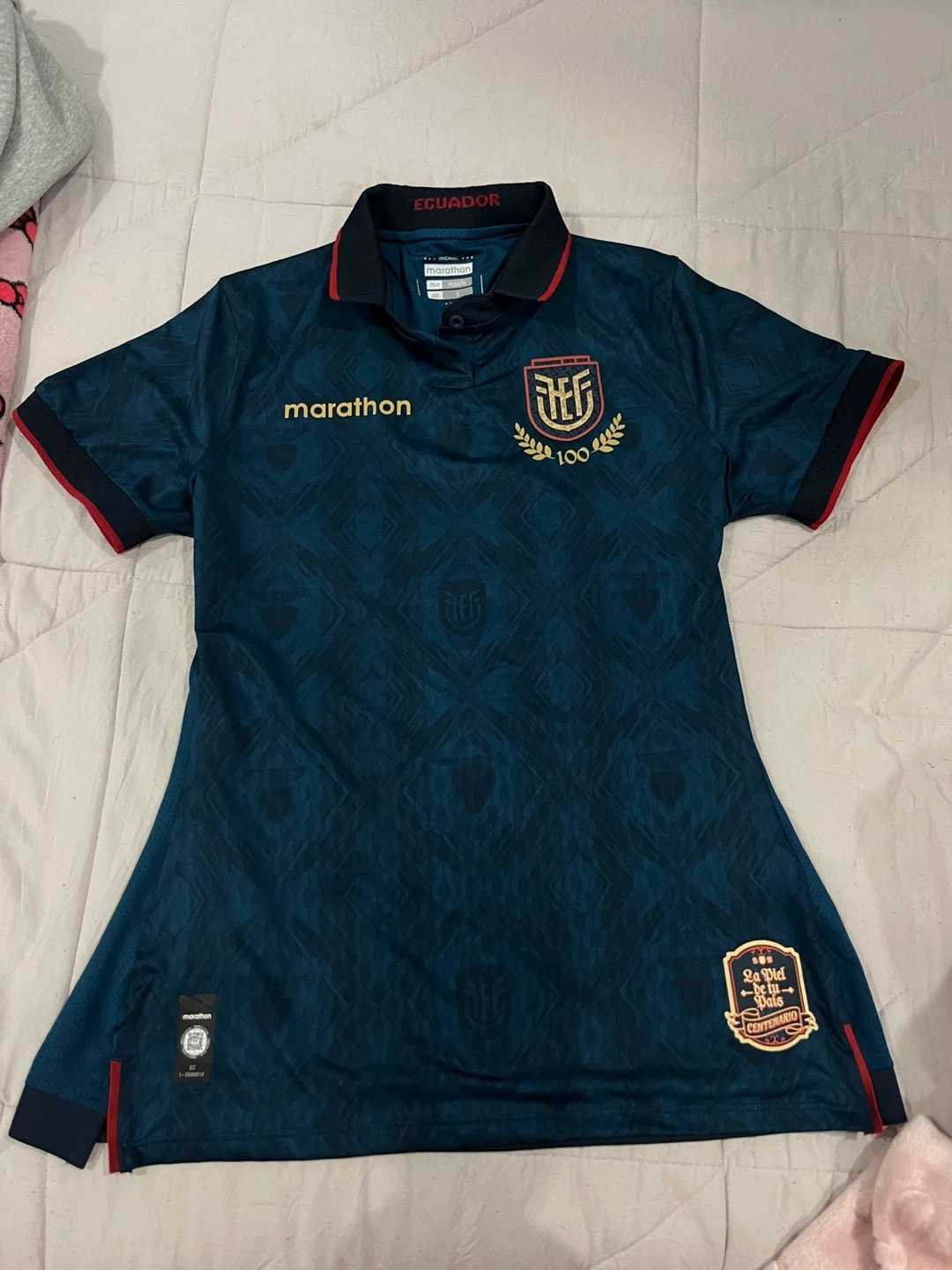 Selling a Marathon Ecuador soccer jersey in size small for women. It's in great condition and features the team logo and detailing. Perfect for any fan!