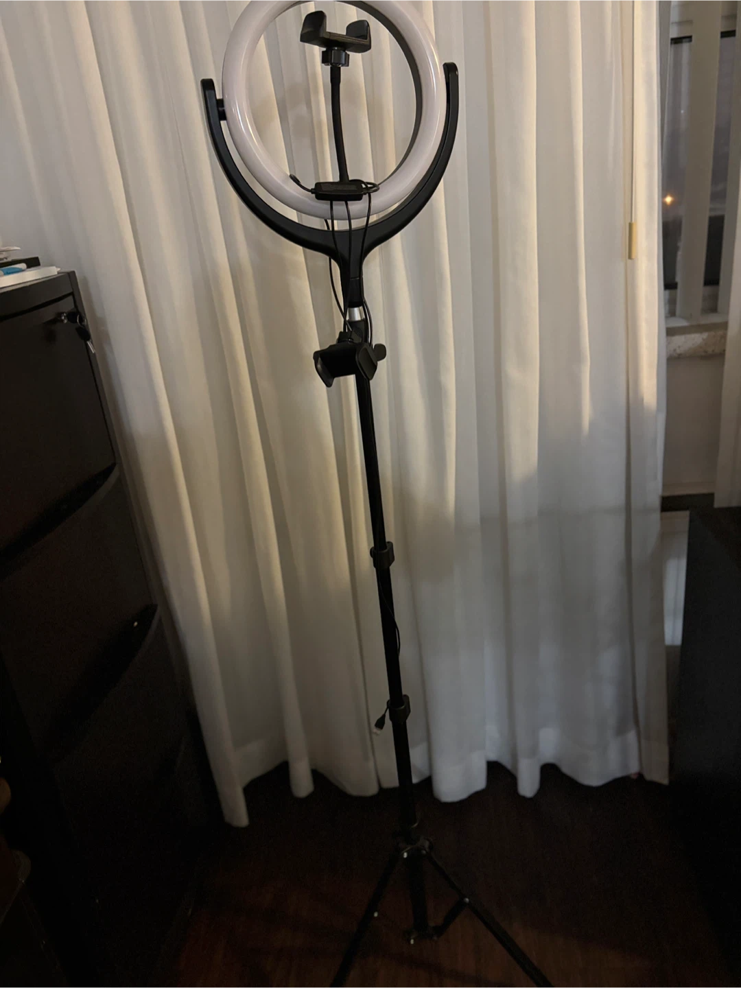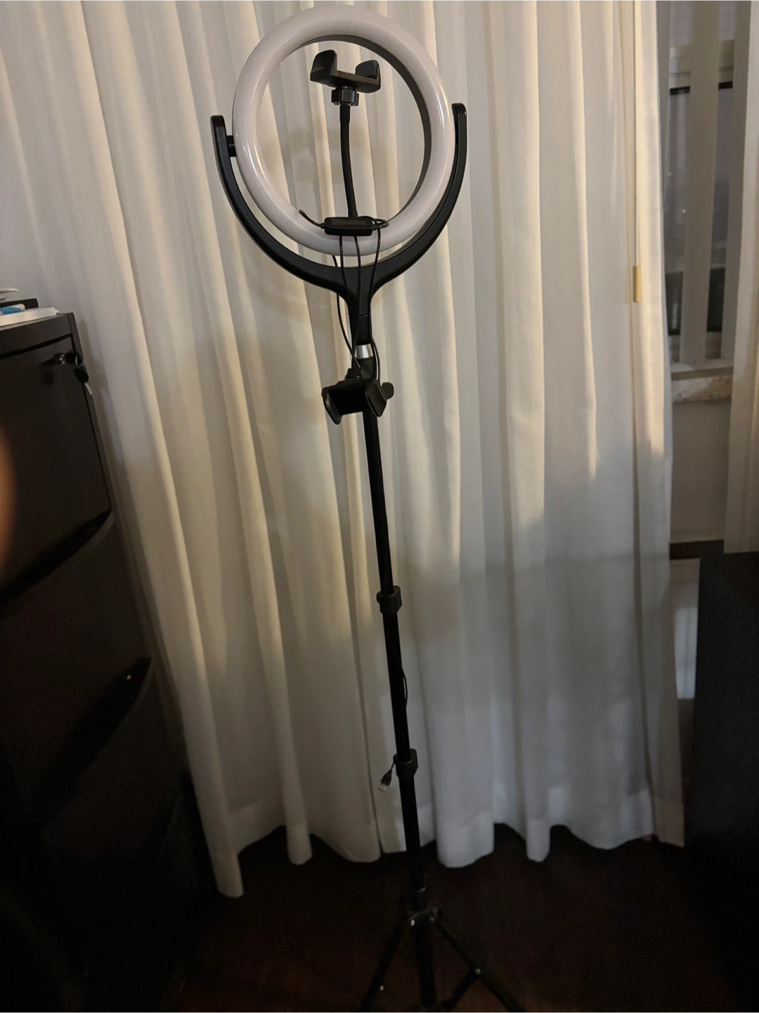 Selling a ring light with a tripod stand! It's in great condition and perfect for video calls, makeup tutorials, or just getting that perfect lighting for photos. The stand is adjustable, so you can get the height just right