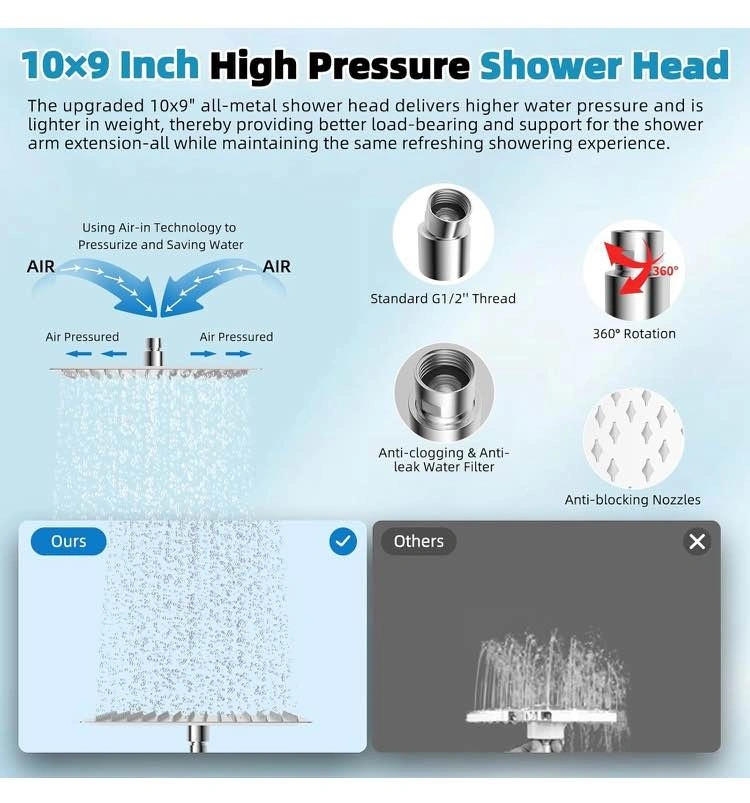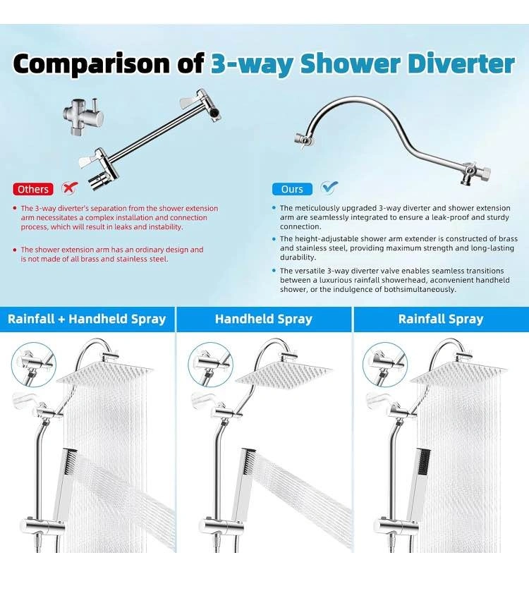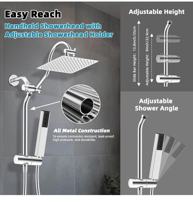 Hibbent All Metal High Pressure 12'' Rainfall Shower Head, Showerhead Combo with 4-Mode Handheld Spray, 12'' Adjustable Extension Arm, Extension Bar, Easy Reach Holder, 71'' Hose, Chrome