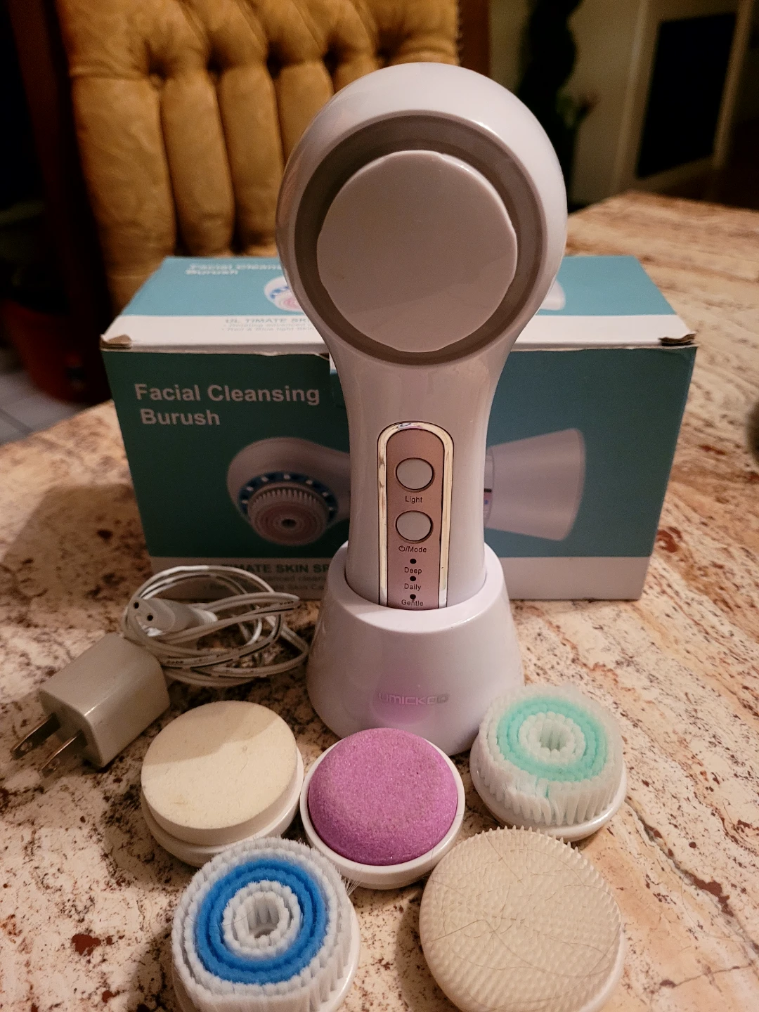 Selling a UMICKE facial cleansing brush! It comes with multiple brush heads for different skin types and needs. You can adjust the intensity from gentle to deep cleaning. Perfect for your skincare routine!