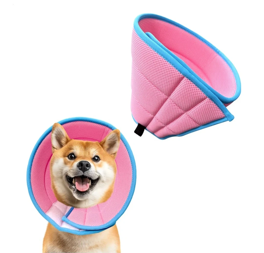 This is a pink pet recovery collar.