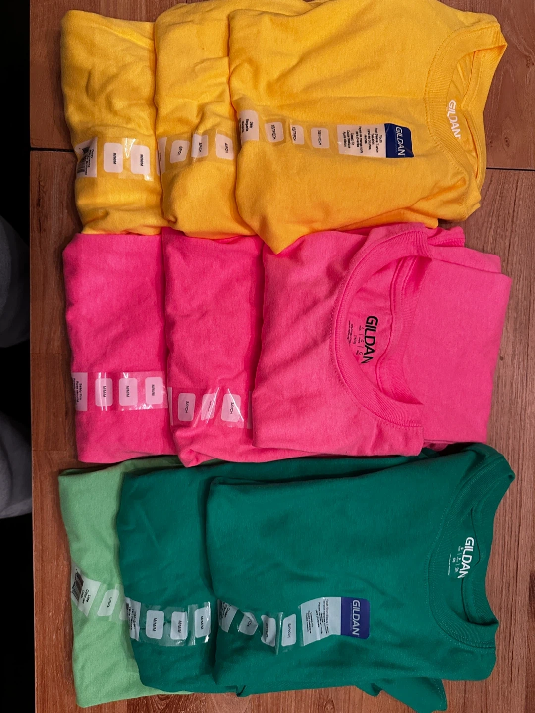 Gildan t-shirts available in various sizes and colours! Never worn. All 9 shirts together.
