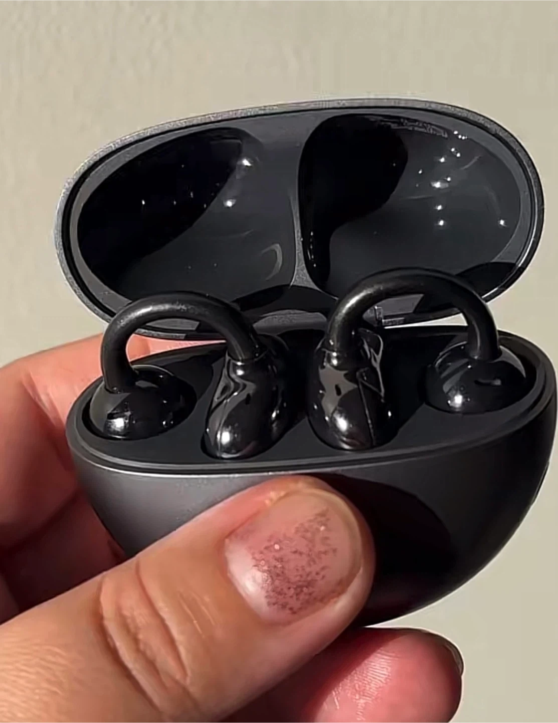 Selling a pair of Huawei FreeClip open-ear headphones in black. They're in excellent condition and come with the original charger! These are super comfortable and have great sound quality, perfect for staying aware of your surroundings while enjoying your music or podcasts