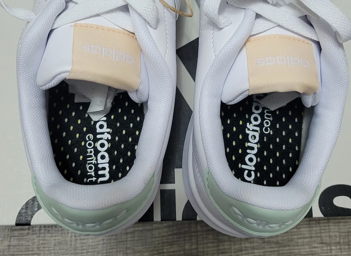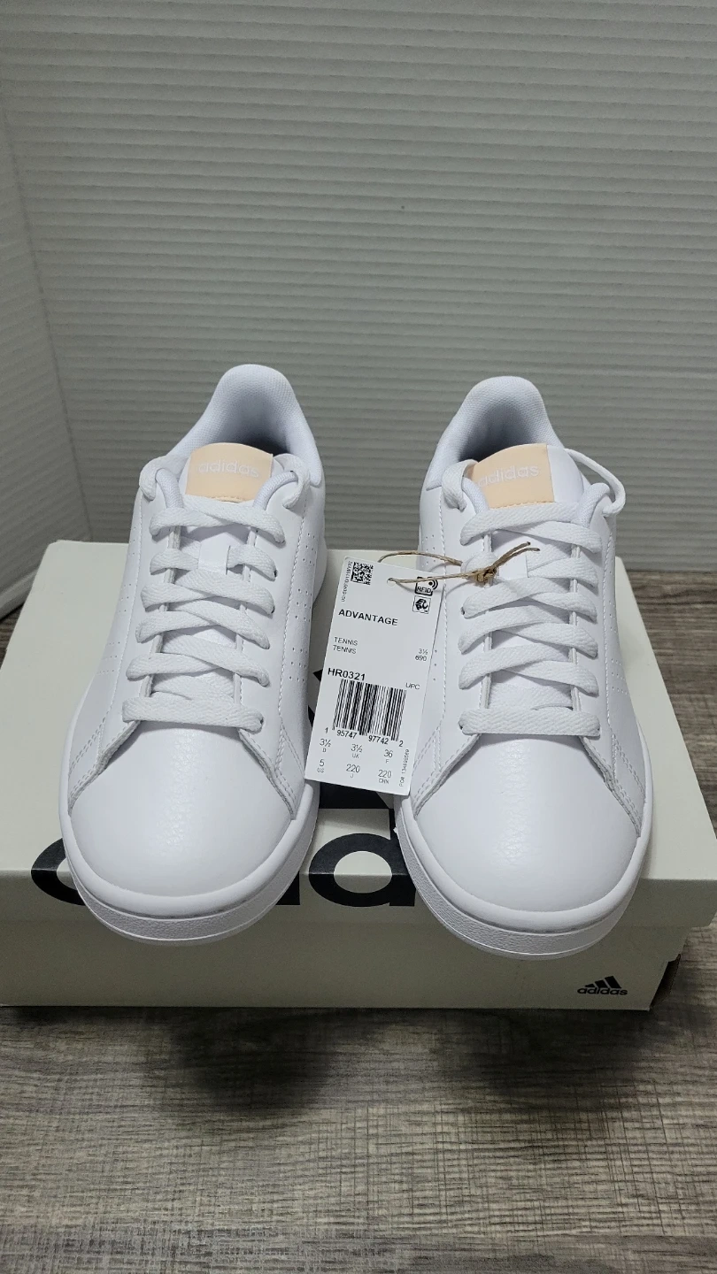 Selling a pair of brand new Adidas Advantage women's shoes in a US size 5! These stylish white sneakers come in the original box.