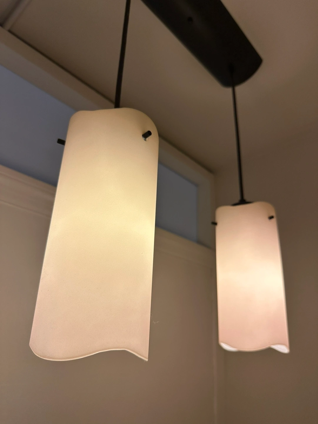 Beautiful statement piece for your kitchen island, dining room, or entryway that creates comfortable cosy warm ambiance. Round Pendants complements contemporary styles and comes in frosted shade with bright off white middle gradually fading to light pink ivory. The hand blown glass shades provide simple elegance while the 9-foot adjustable cord makes the length of the pendants customizable for your particular space.